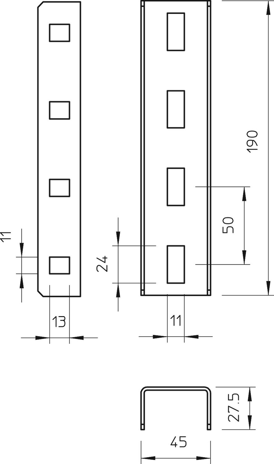 Acier inoxydable, teint non Avec accessoires pour vis oui Convient pour formes de profilé profilé en U Couleur zinc Dimension 190x45 Dimensions 27,5 x 45 x 190 Écart du perçage central 50 mm Empreinte CO2 (GWP) du berceau à la porte 1,2584 kg CO2e / 1 Pièce Hauteur 27,5 mm Largeur 45 mm Longueur 190 mm Matériau Acier Surface galvanisé à chaud par trempage - Tous les types