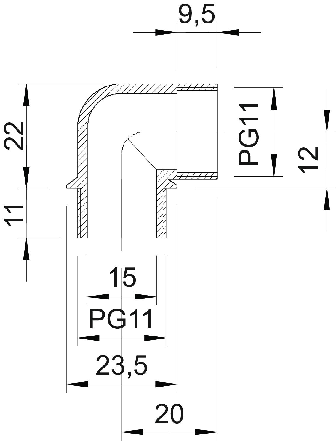 Description du produitRaccord coudé avec filetages femelles et mâles PG selon DIN 40430.