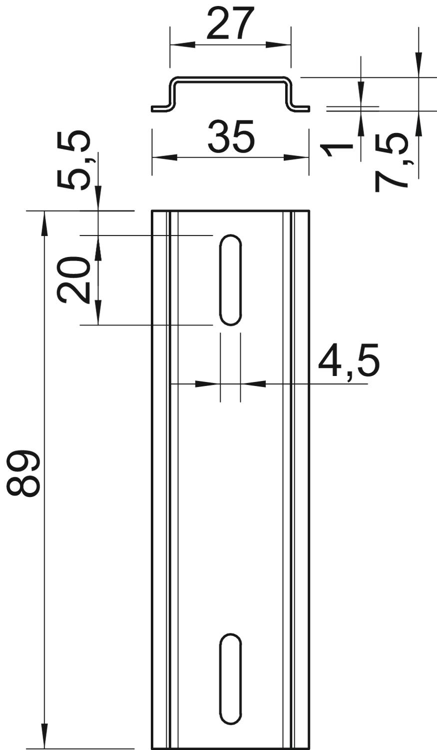 Description du produitRail Oméga 35 x 7,5 mm selon la norme DIN EN 60715 (anciennement DIN EN 50022).