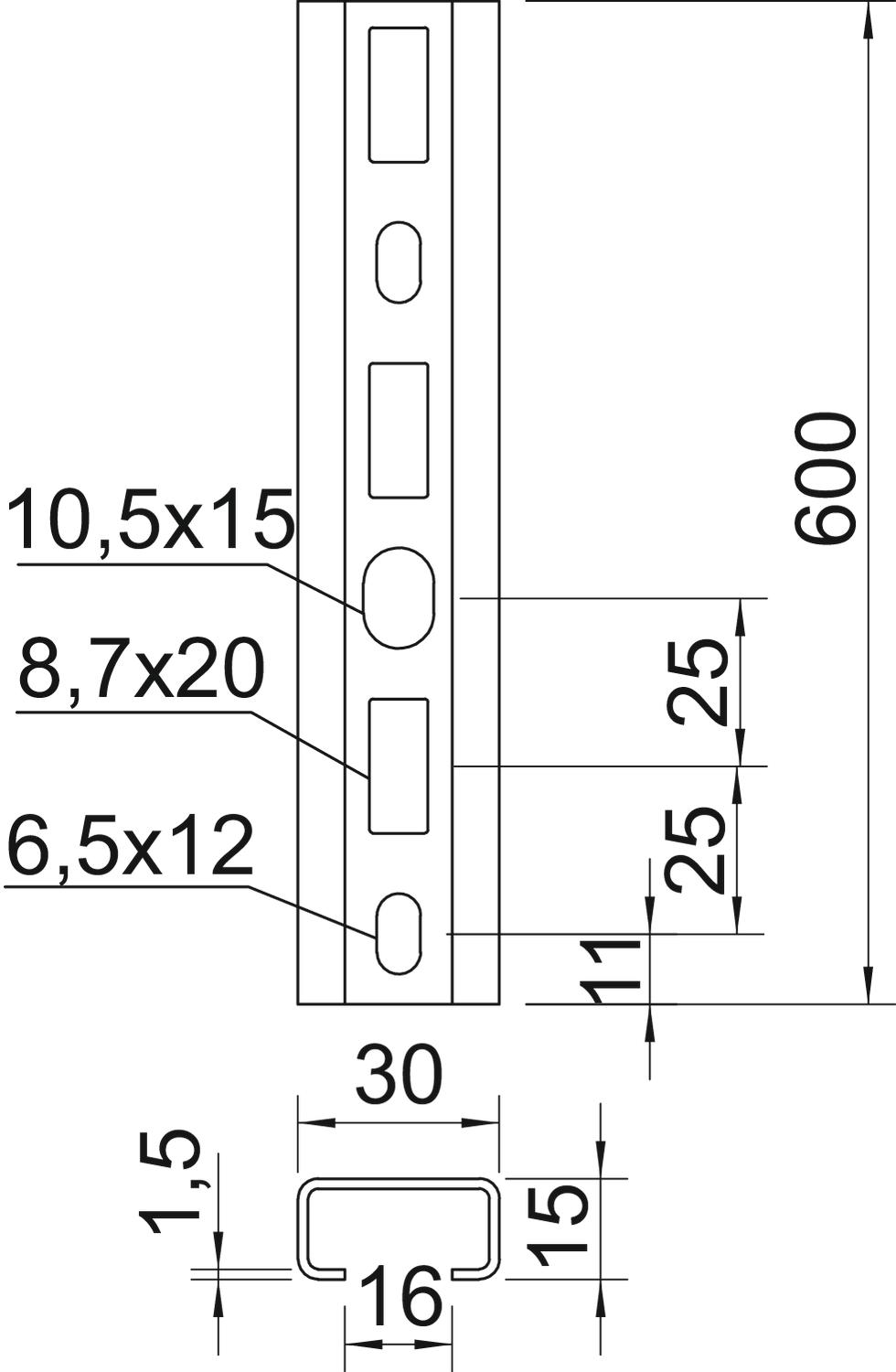 Description du produitRail profilé, perforé, ouverture 16 mm.