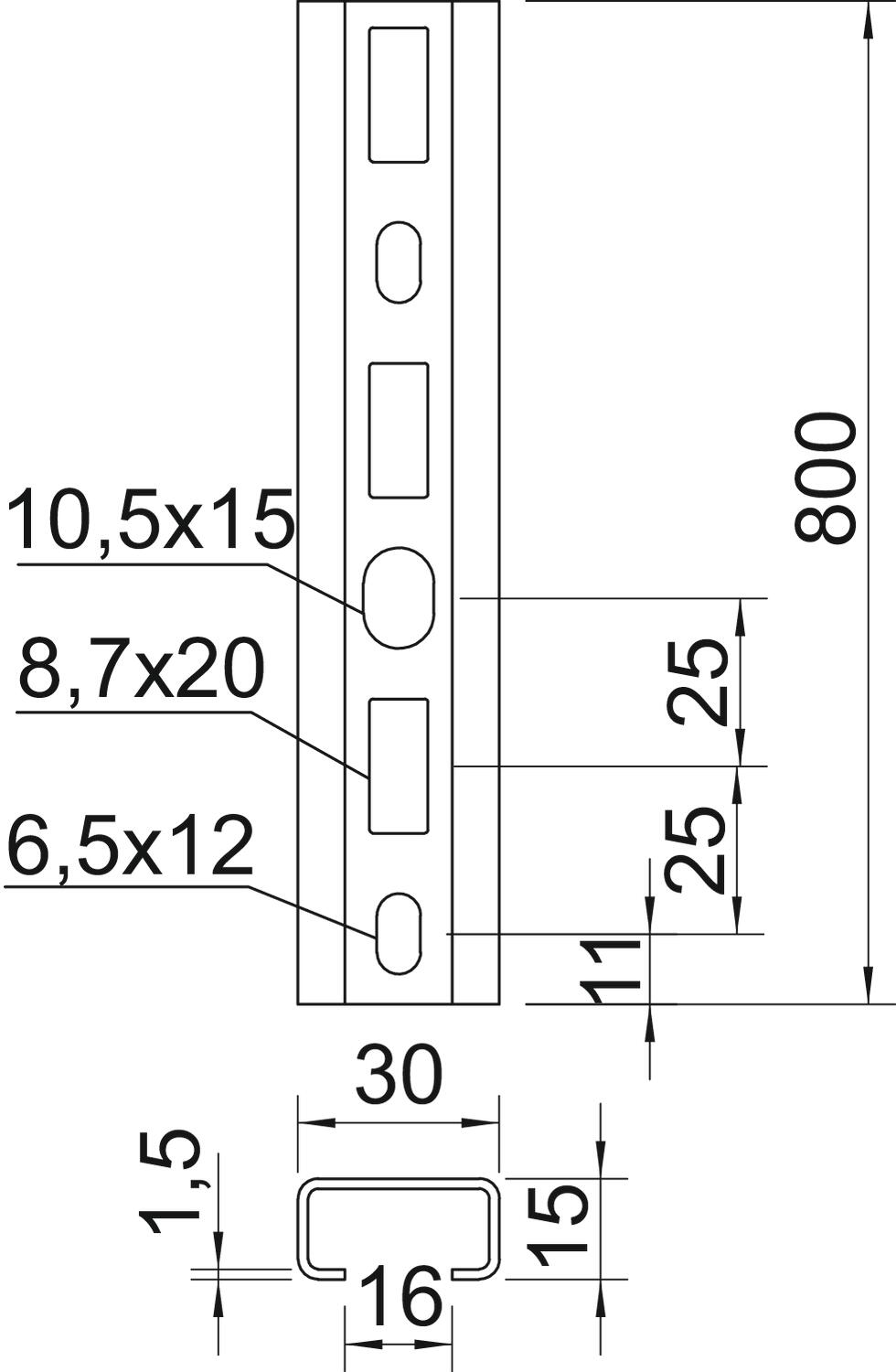 Description du produitRail profilé, perforé, ouverture 16 mm.