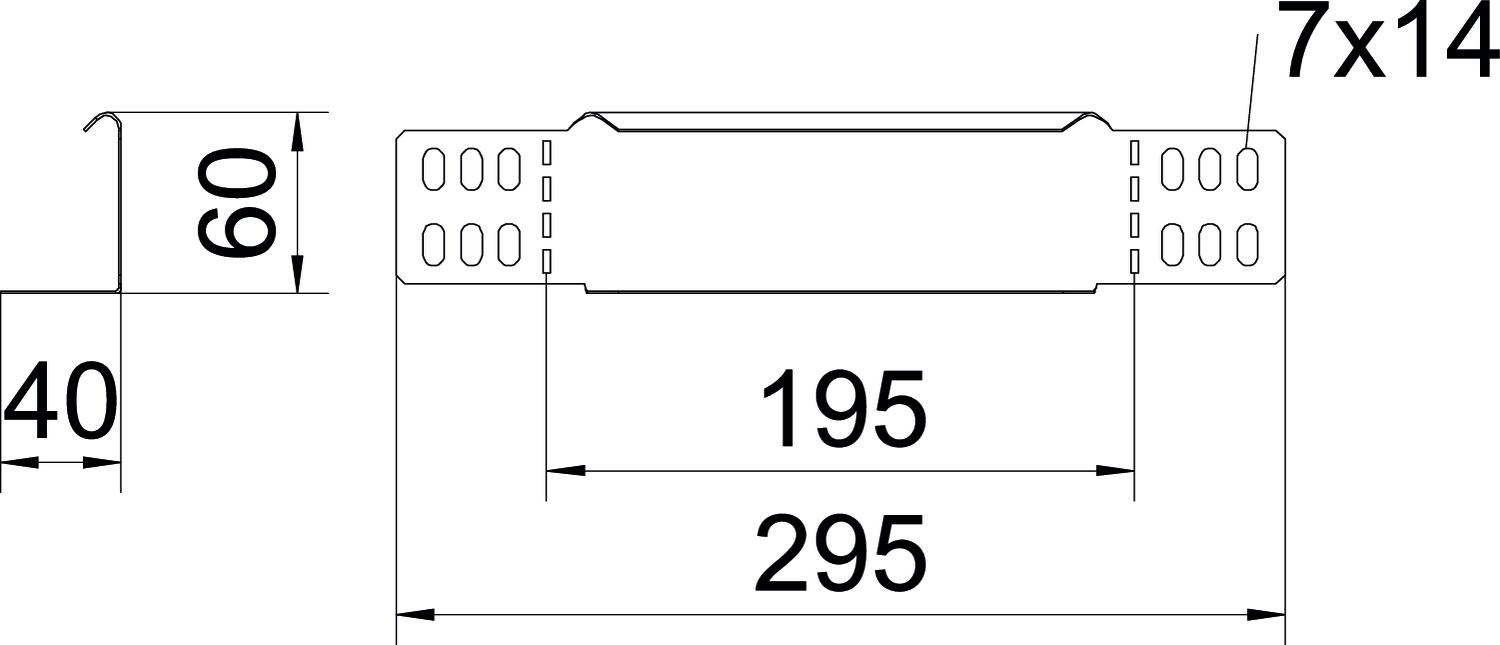 Description du produitEquerre de réduction et tôle terminale pour chemins de câbles d'une hauteur d'aile de 60 mm.