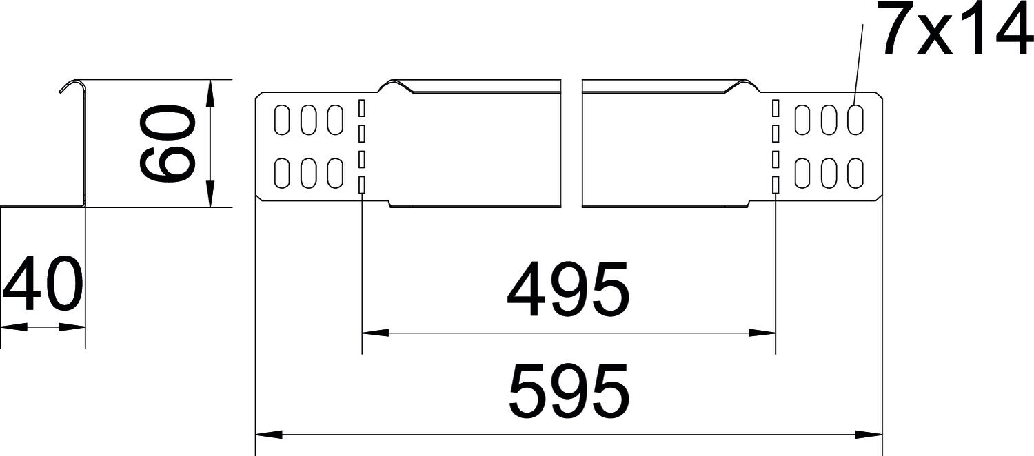 Description du produitEquerre de réduction et tôle terminale pour chemins de câbles d'une hauteur d'aile de 60 mm.