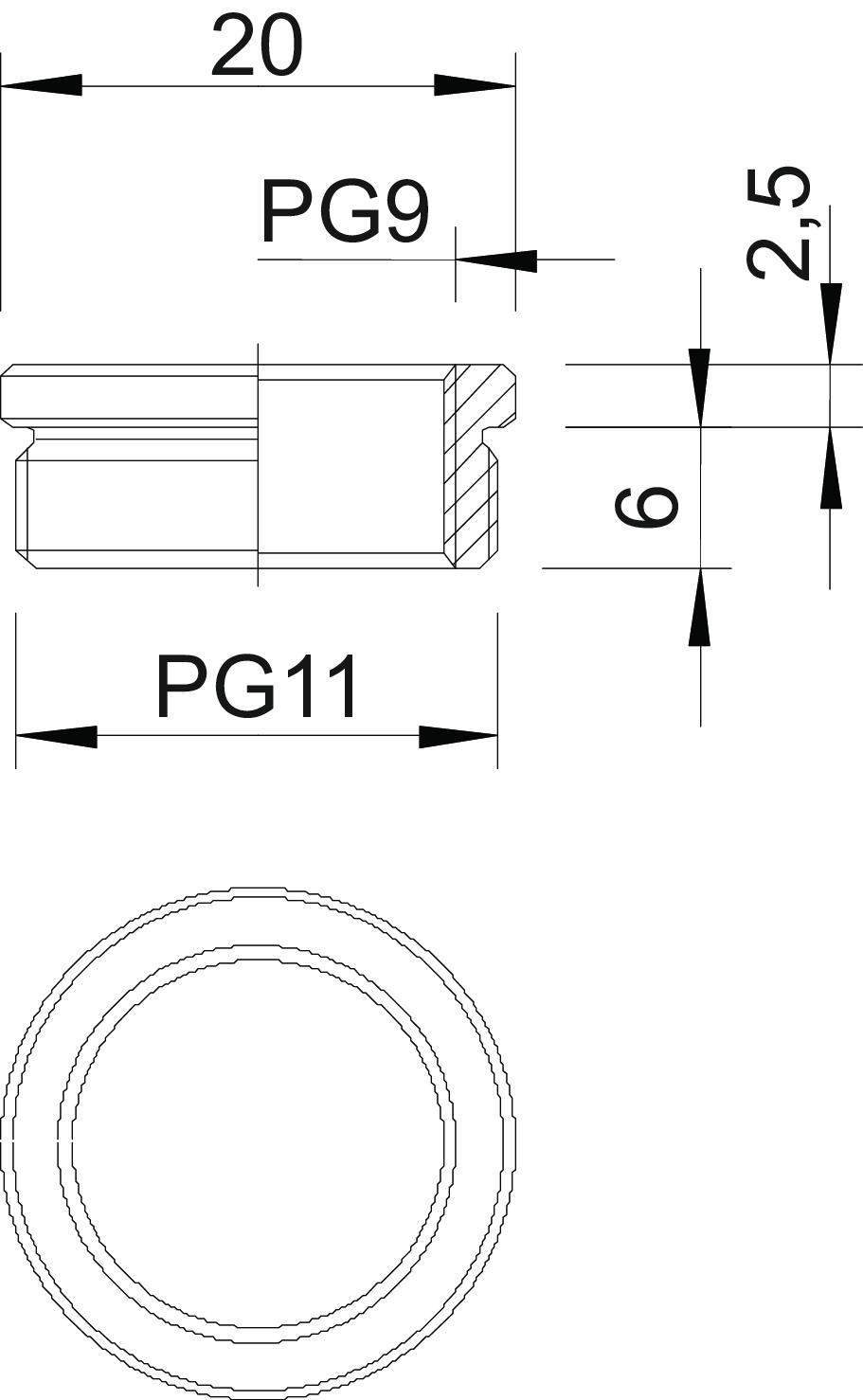 Description du produitRéducteur (partie H) selon la norme DIN 46320, avec filetage PG selon la norme DIN 40430, utilisable comme pièce intermédiaire entre un pas PG et un presse-étoupe de plus petite dimension.