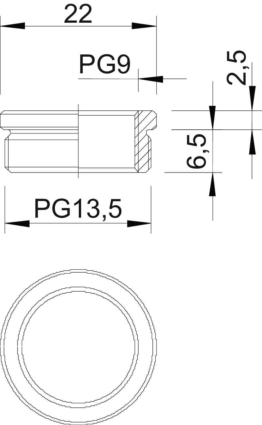 Description du produitRéducteur (partie H) selon la norme DIN 46320, avec filetage PG selon la norme DIN 40430, utilisable comme pièce intermédiaire entre un pas PG et un presse-étoupe de plus petite dimension.