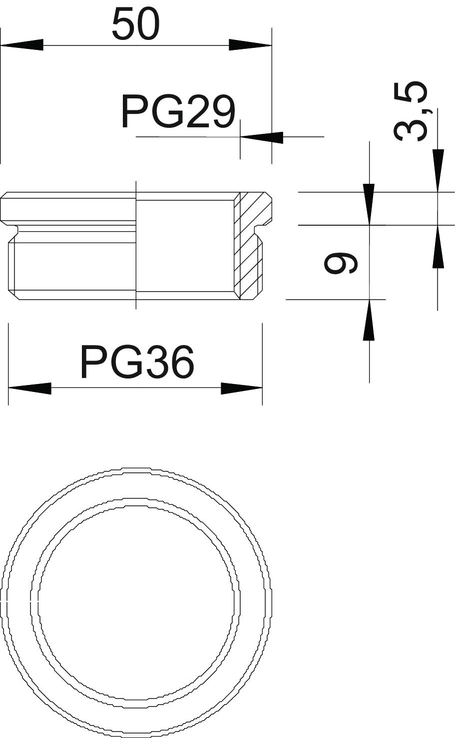 Cote D 50 mm Cote L1 9 mm Cote L2 3,5 mm Dimension PG36-PG29 Dimension du filetage PG extérieur 36 Dimension du filetage PG intérieur 29 Eclateur antidéflagrant non Empreinte CO2 (GWP) du berceau à la porte 0,175 kg CO2e / 1 Pièce Longueur de filetage 9 mm Matériau laiton Nickelé oui Surface nickelé Type de filetage, filetage extérieur PG Type de filetage, filetage intérieur PG - Tous les types