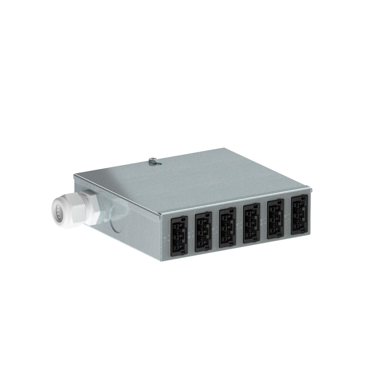 Couleur du système de connecteurs noir Dimension 150x196x46 Empreinte CO2 (GWP) du berceau à la porte 2,2896 kg CO2e / 1 Pièce Entrée 5 pôles Hauteur 46 mm Largeur 149 mm Longueur 196 mm Matériau Acier Nombre de circuits d'entrée 1 nombre prises 6 Section du câble de raccordement 4 mm² Système de connecteur à fiche lié au système oui Type de raccordement Borne - Tous les types