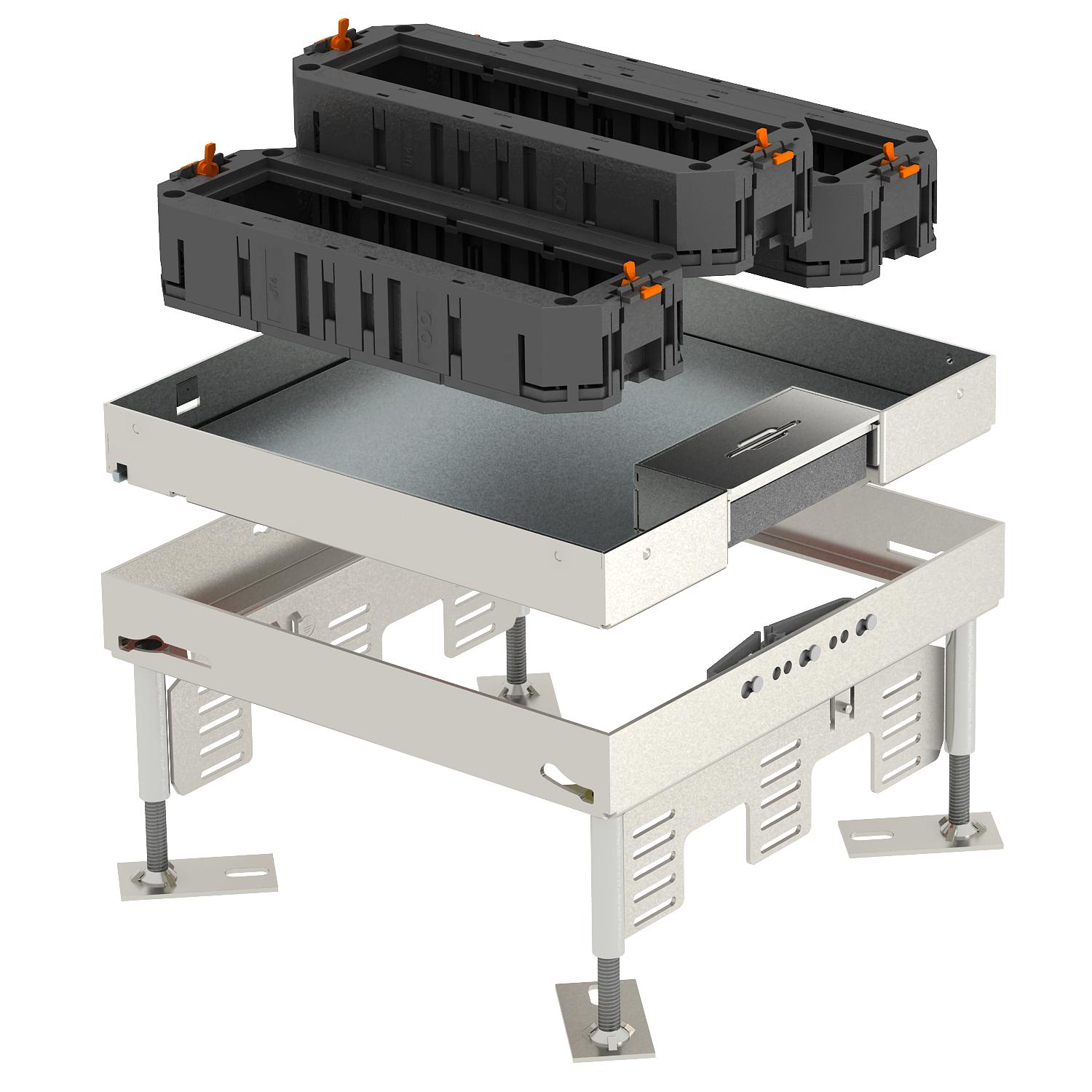 Description du produitCassette réglable en hauteur avec tous les accessoires nécessaires pour le montage direct dans tous les types de sol avec revêtements nettoyés à sec en intérieur.