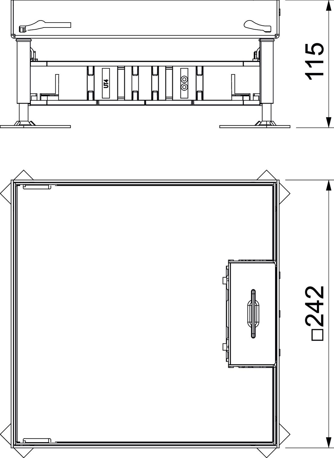 - trois supports universels UT4/45 pour quatre appareillages encastrables Modul 45® chacun.Cassette et sortie de cordon en acier inoxydable.