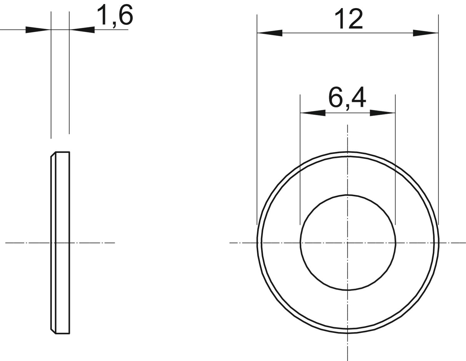 avec denture non Cote d 6,4 mm Diamètre 12 mm Diamètre du trou 6,4 mm Diamètre extérieur 12 mm Diamètre intérieur 6,4 mm Dimension M6 Dimension d min. 12 mm Dimension h 1,6 mm Empreinte CO2 (GWP) du berceau à la porte 0,0041 kg CO2e / 1 Pièce Épaisseur de tôle 0,06 in Épaisseur du matériau 1,6 mm Filetage M6 Forme de l'orifice rond Matériau Acier inoxydable Surface nu, traité - Tous les types
