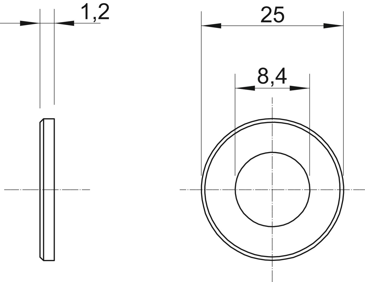Cote d 8,4 mm Dimension M8,Ø25mm Dimension d max. 25 mm Dimension d min. 25 mm Dimension h 1,5 mm Empreinte CO2 (GWP) du berceau à la porte 0,0181 kg CO2e / 1 Pièce Épaisseur de tôle 0,05 in Épaisseur du matériau 1,2 mm Filetage M8 Matériau Acier inoxydable Sans halogène non Surface nu, traité - Tous les types