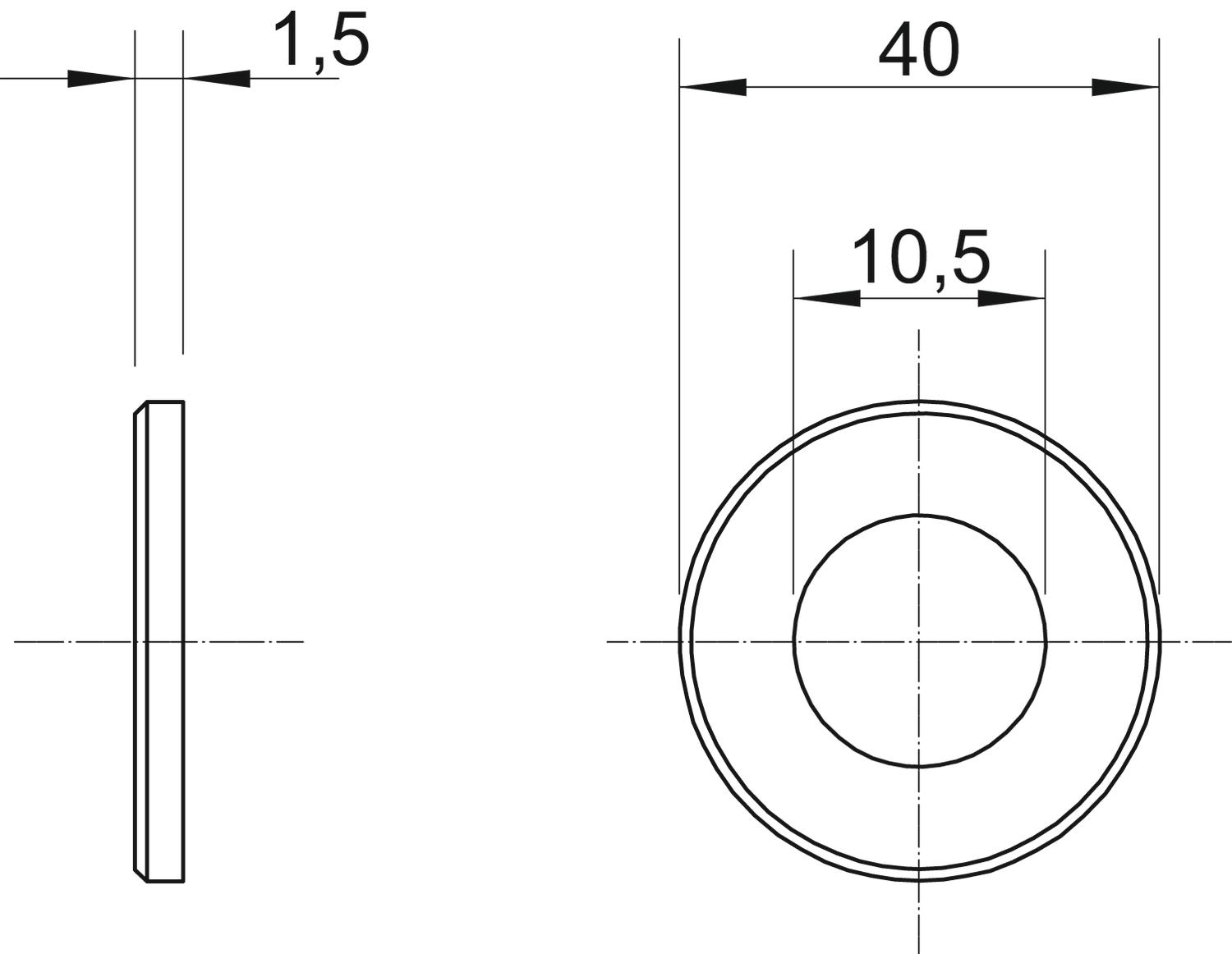 Cote d 10,5 mm Dimension M10,Ø40mm Dimension d max. 40 mm Dimension d min. 40 mm Dimension h 1,5 mm Empreinte CO2 (GWP) du berceau à la porte 0,0293 kg CO2e / 1 Pièce Épaisseur de tôle 0,06 in Épaisseur du matériau 1,5 mm Filetage M10 Matériau Acier inoxydable Sans halogène non Surface nu, traité - Tous les types