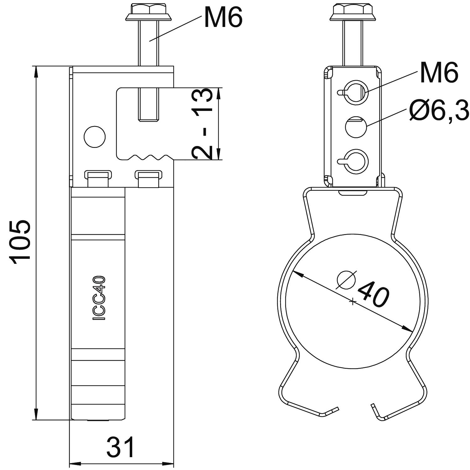 Description du produitScrew-in support clamp for mounting pipes and cables. Closed pipe seat at bottom. Fastening on steel girders by screwing on.