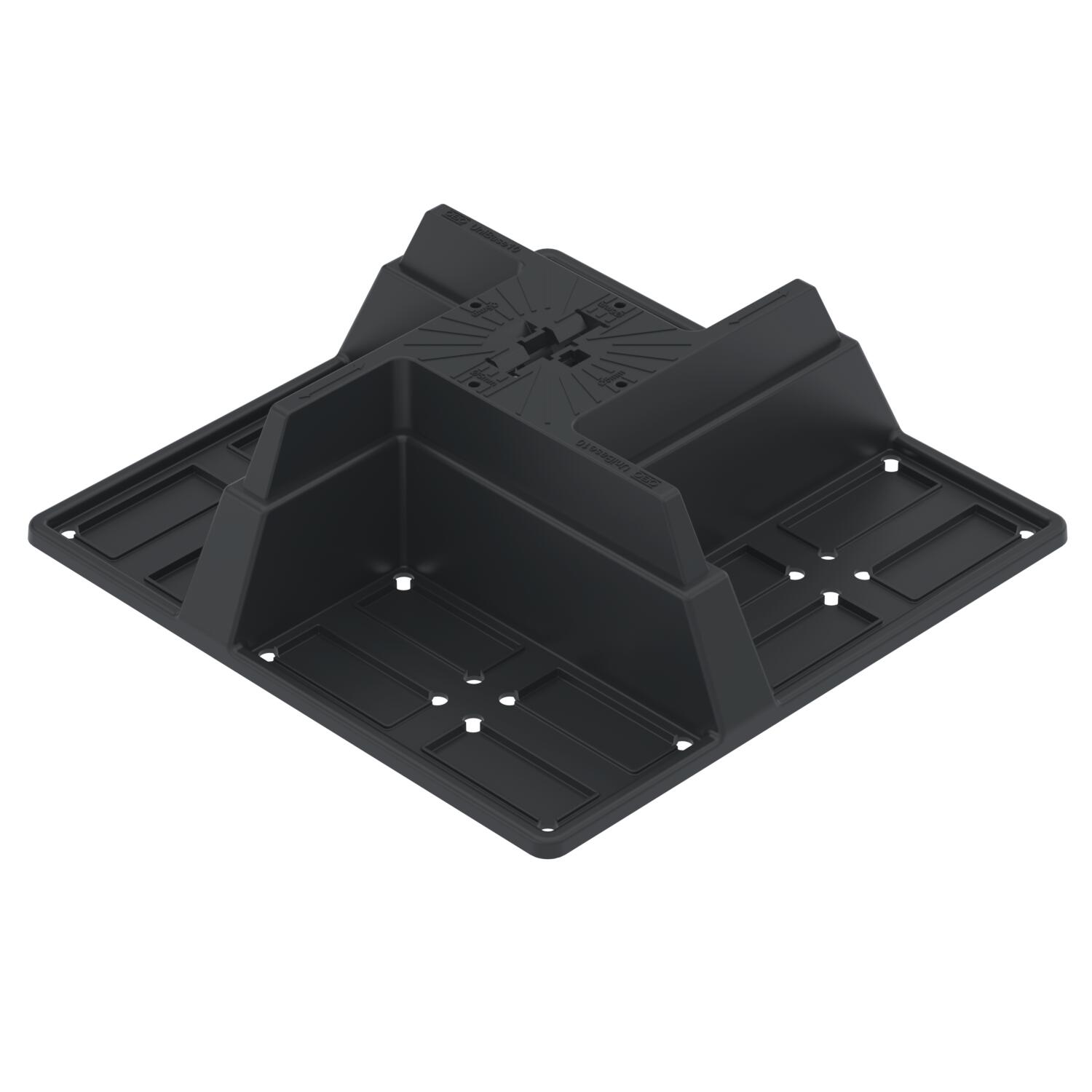 Ajustement 5 mm Carrying depth for ballasting max. 200 mm Carrying height for ballasting max. 100 mm Carrying width for ballasting max. 100 mm Couleur noir Hauteur 117 mm Largeur 372 mm Longueur 372 mm Matériau Acrylonitrile-Styrène-Acrylester Number of carrying surfaces for ballasting 4 St. Poids 0,915 kg - Tous les types