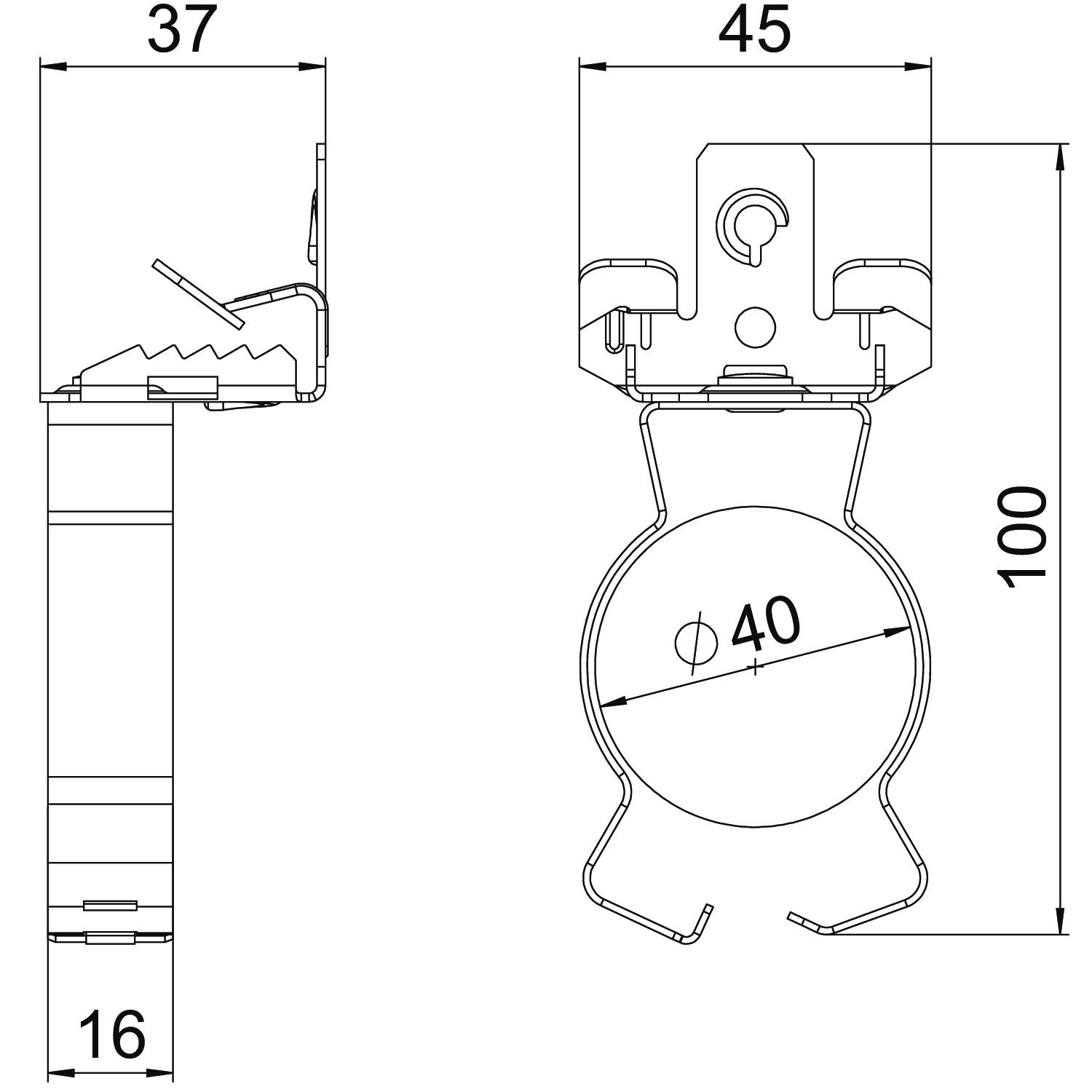 Description du produitSupport clamp for mounting pipes. Closed pipe seat at bottom. Fastening through knocking onto steel girders.