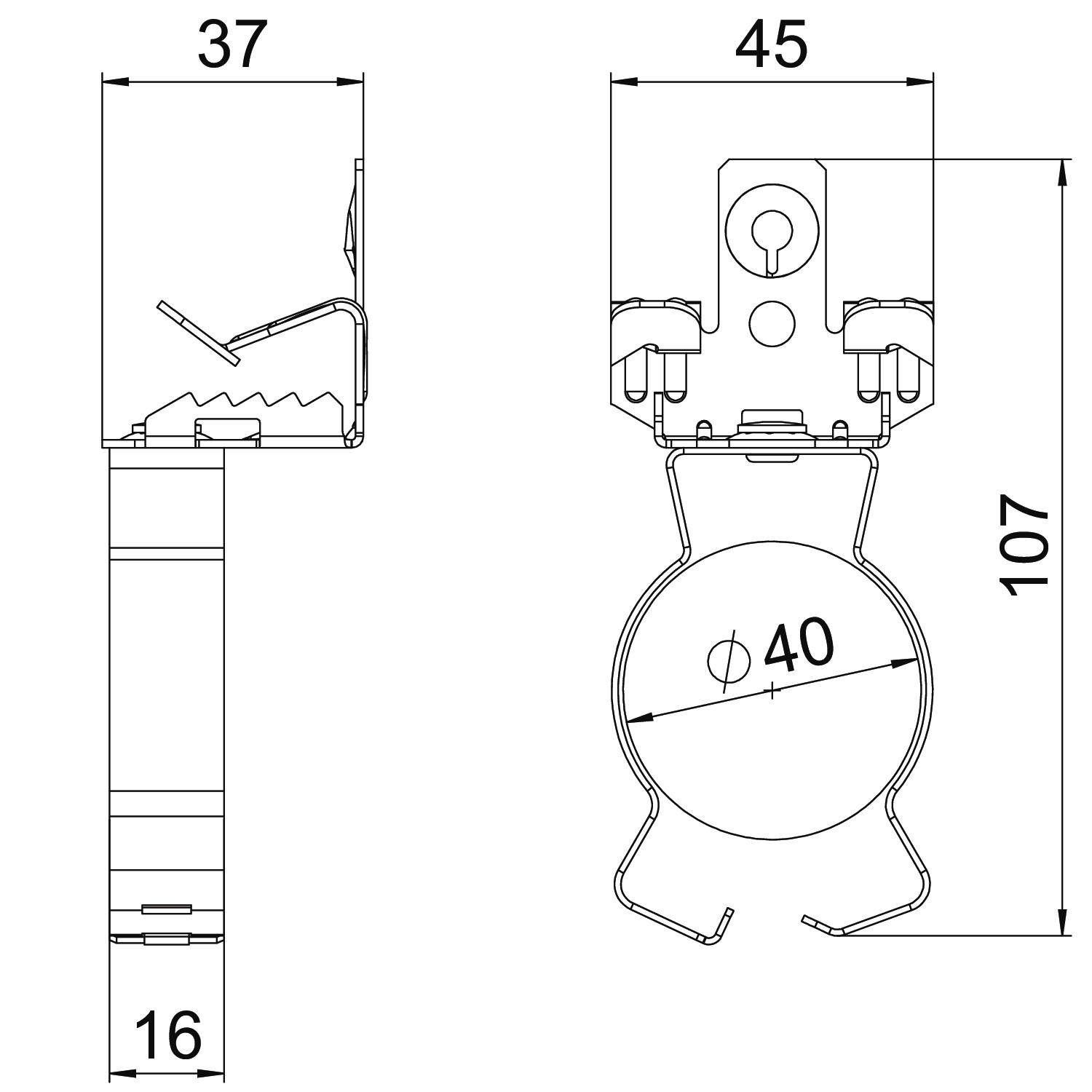 Description du produitSupport clamp for mounting pipes. Closed pipe seat at bottom. Fastening through knocking onto steel girders.
