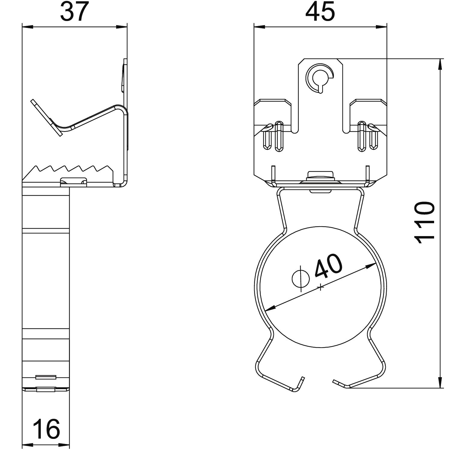 Description du produitSupport clamp for mounting pipes. Closed pipe seat at bottom. Fastening through knocking onto steel girders.