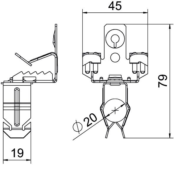 Description du produitSupport clamp for mounting pipes. Open pipe seat at bottom. Fastening through knocking onto steel girders.