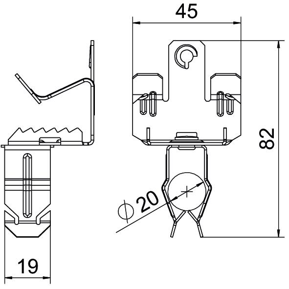 Description du produitSupport clamp for mounting pipes. Open pipe seat at bottom. Fastening through knocking onto steel girders.