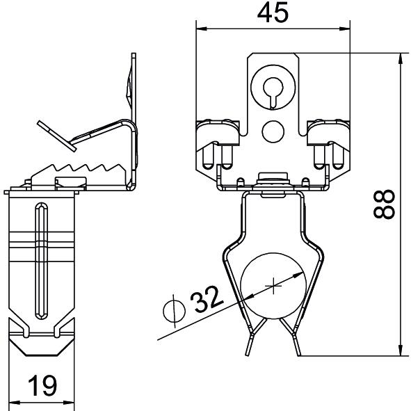 Description du produitSupport clamp for mounting pipes. Open pipe seat at bottom. Fastening through knocking onto steel girders.