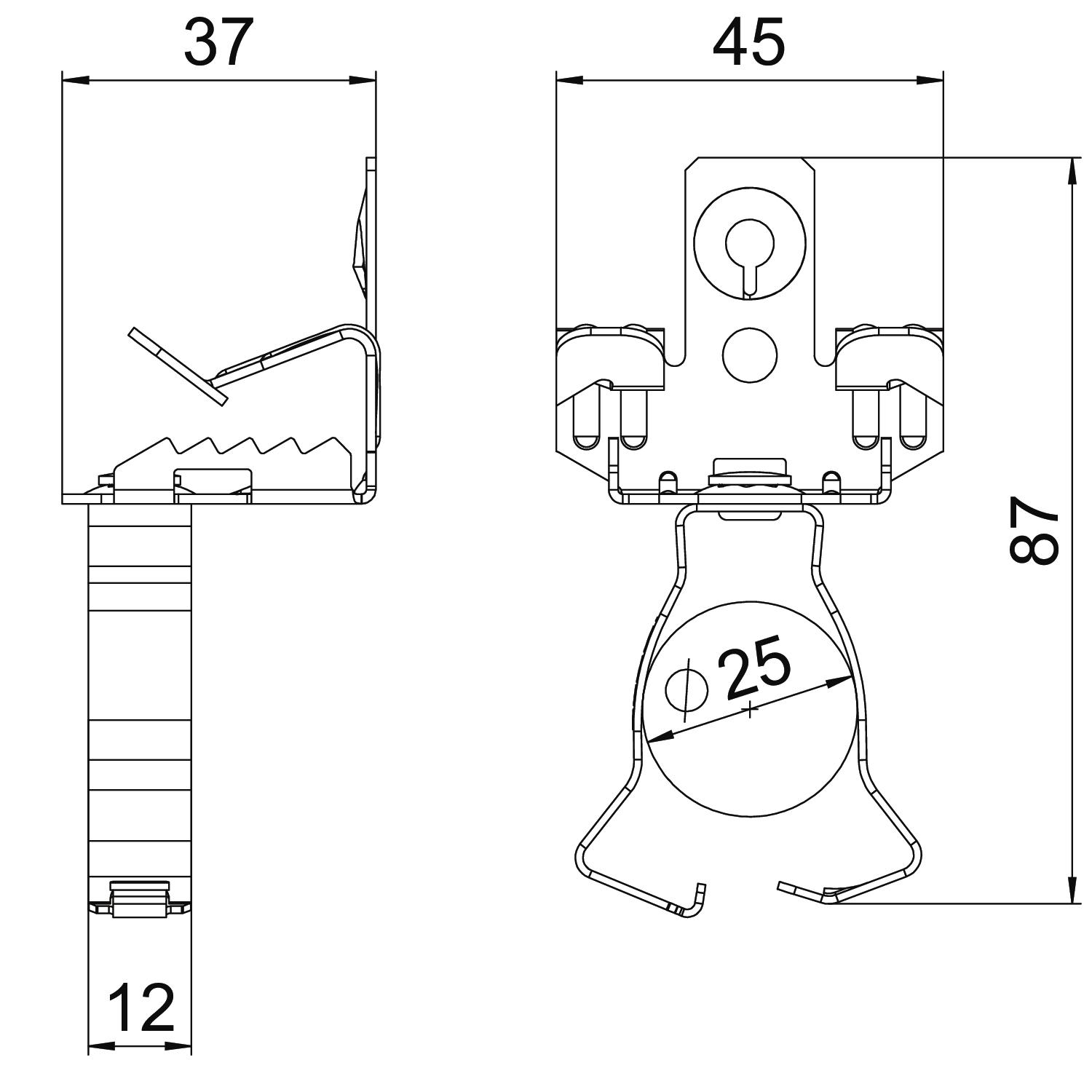 Description du produitSupport clamp for mounting pipes. Closed pipe seat at bottom. Fastening through knocking onto steel girders.