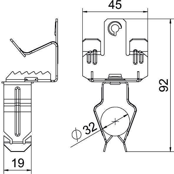 Description du produitSupport clamp for mounting pipes. Open pipe seat at bottom. Fastening through knocking onto steel girders.