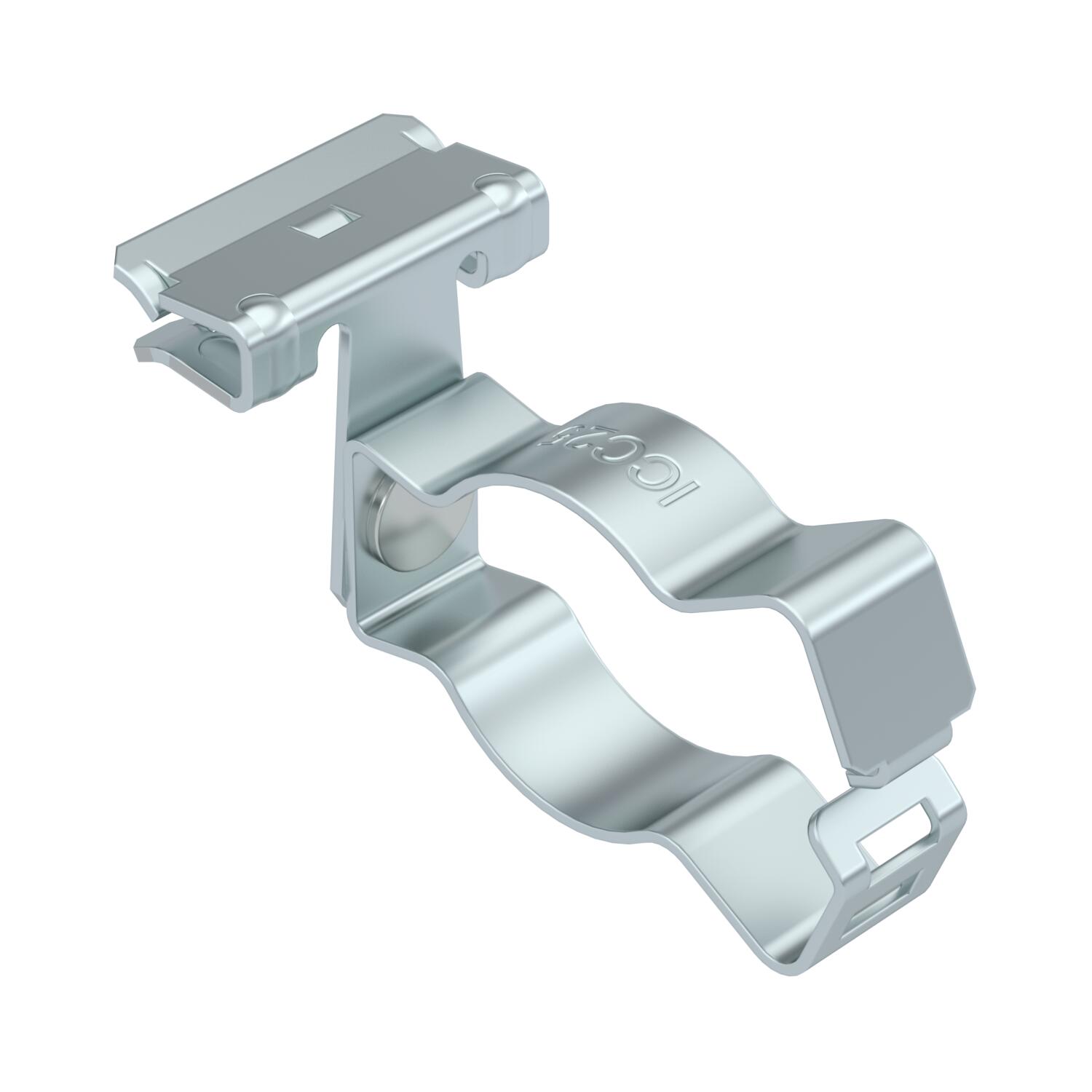Description du produitSupport clamp for mounting pipes. Closed pipe seat at side. Fastening through knocking onto steel girders.