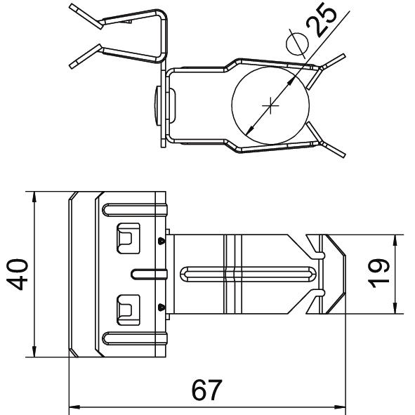 À charnière non Charge de rupture 0,11 kN Charnière ajustable non Cote L 67 mm Couleur zinc Diamètre de câbles/tubes min. 22 mm Diamètre des câbles/tubes max. 30 mm Dimension 4-10mm Dimension W 40 mm Épaisseur de bride F max. 10 mm Épaisseur de bride F min. 4 mm Hauteur 38 mm Largeur 40 mm Longueur 67 mm Matériau Acier Surface Lamelle de zinc Type de fixation Bornes Type/élément de raccordement Tube/câble - Tous les types