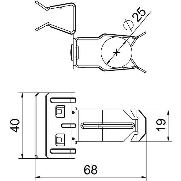 Description du produitSupport clamp for mounting pipes. Open pipe seat at side. Fastening through knocking onto steel girders.