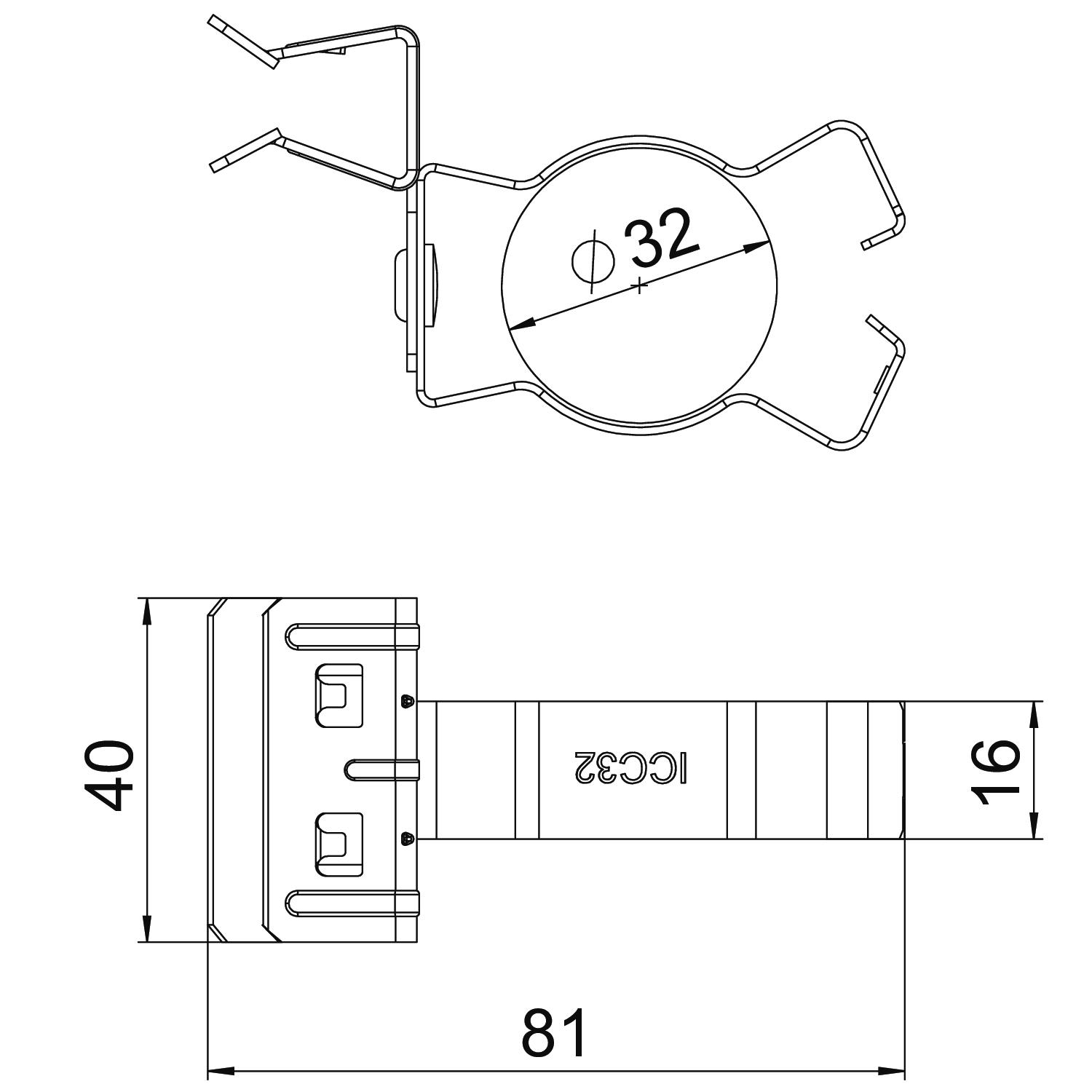 Description du produitSupport clamp for mounting pipes. Closed pipe seat at side. Fastening through knocking onto steel girders.