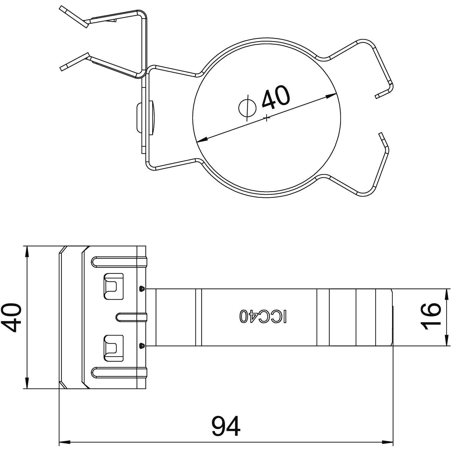 Description du produitSupport clamp for mounting pipes. Closed pipe seat at side. Fastening through knocking onto steel girders.