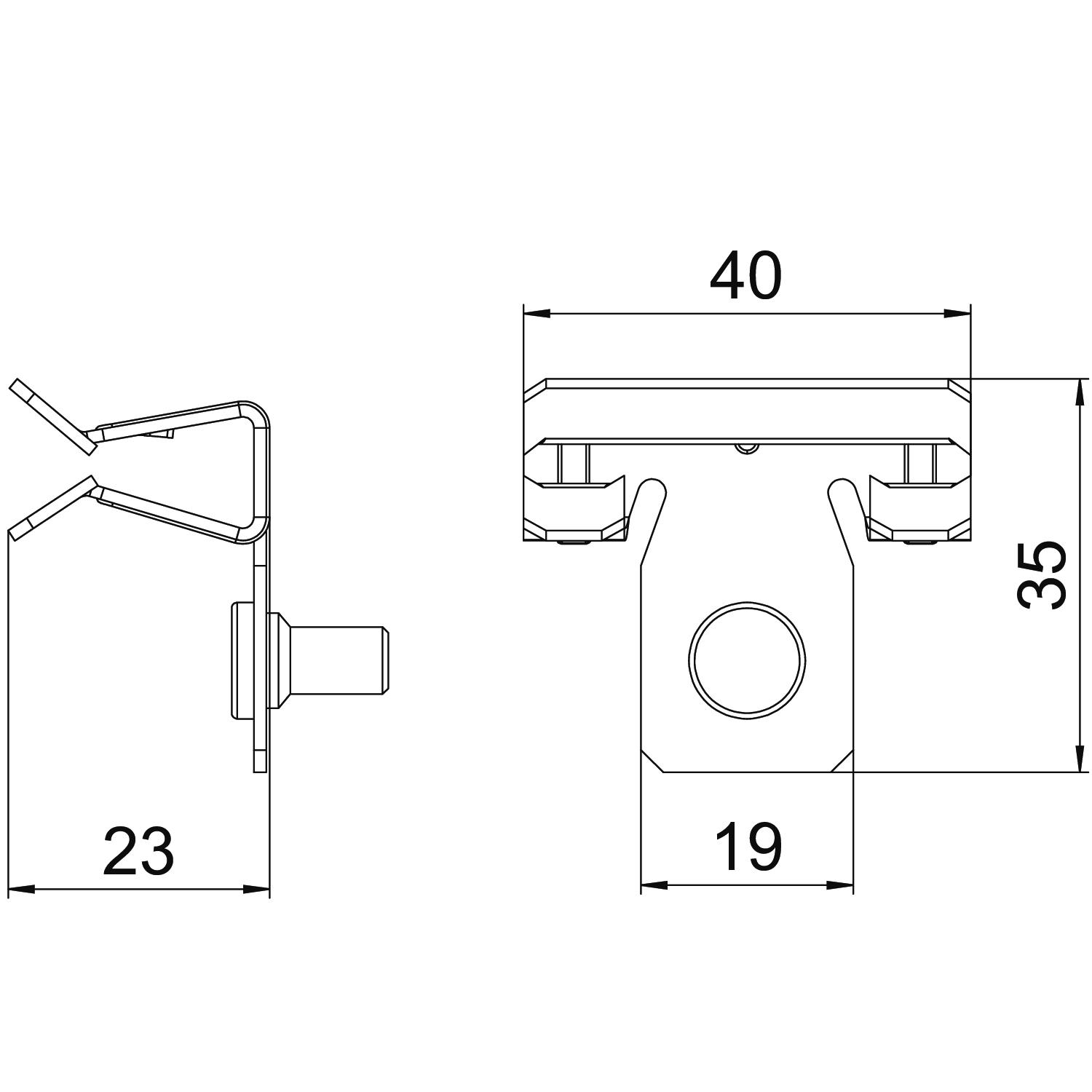 Description du produitSupport clamp with M6 threaded bolt at side for individual mounting solutions. Fastening through knocking onto steel girders.