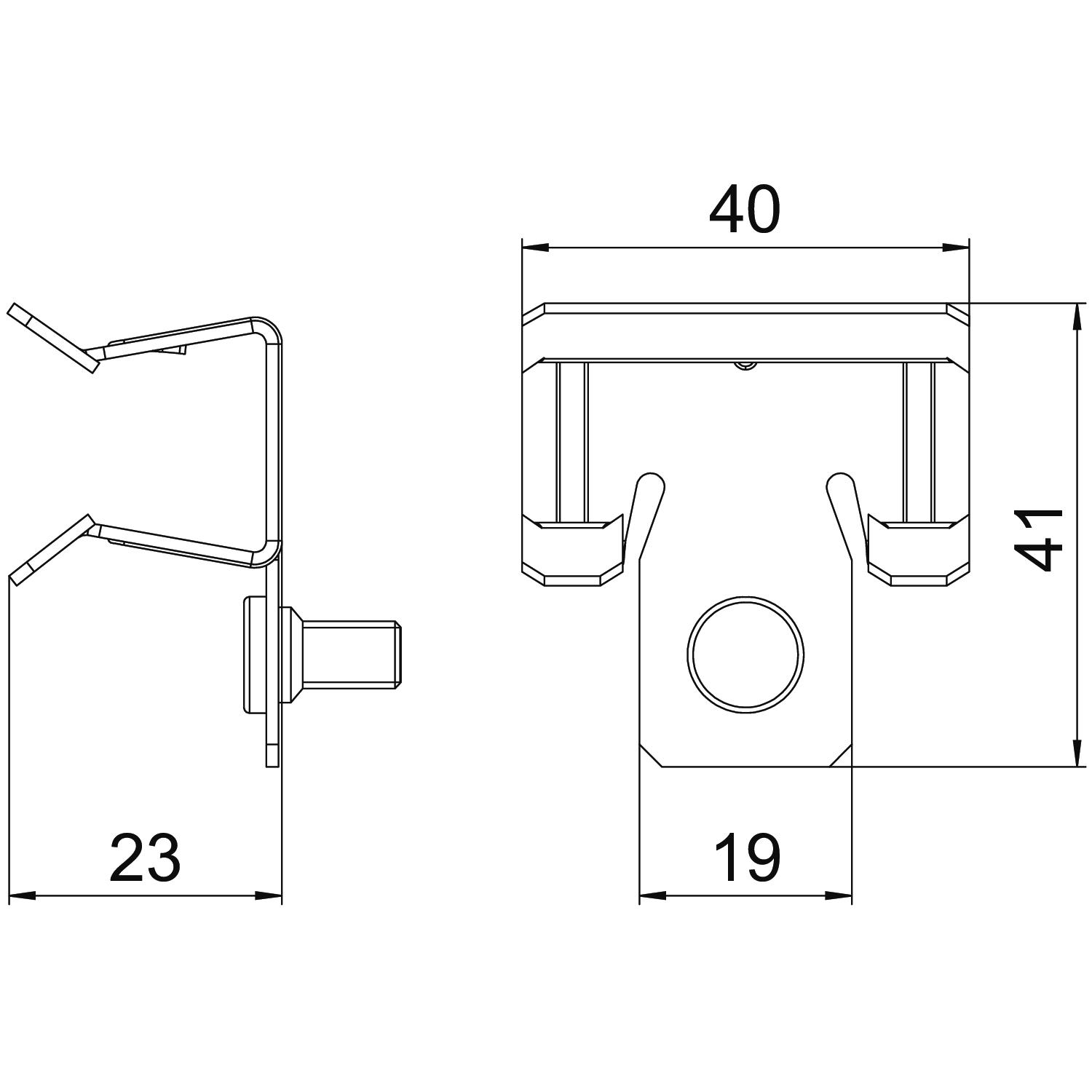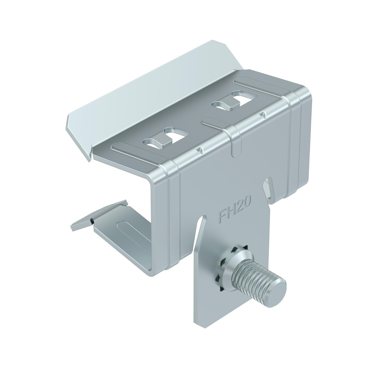 Description du produitSupport clamp with M6 threaded bolt at side for individual mounting solutions. Fastening through knocking onto steel girders.