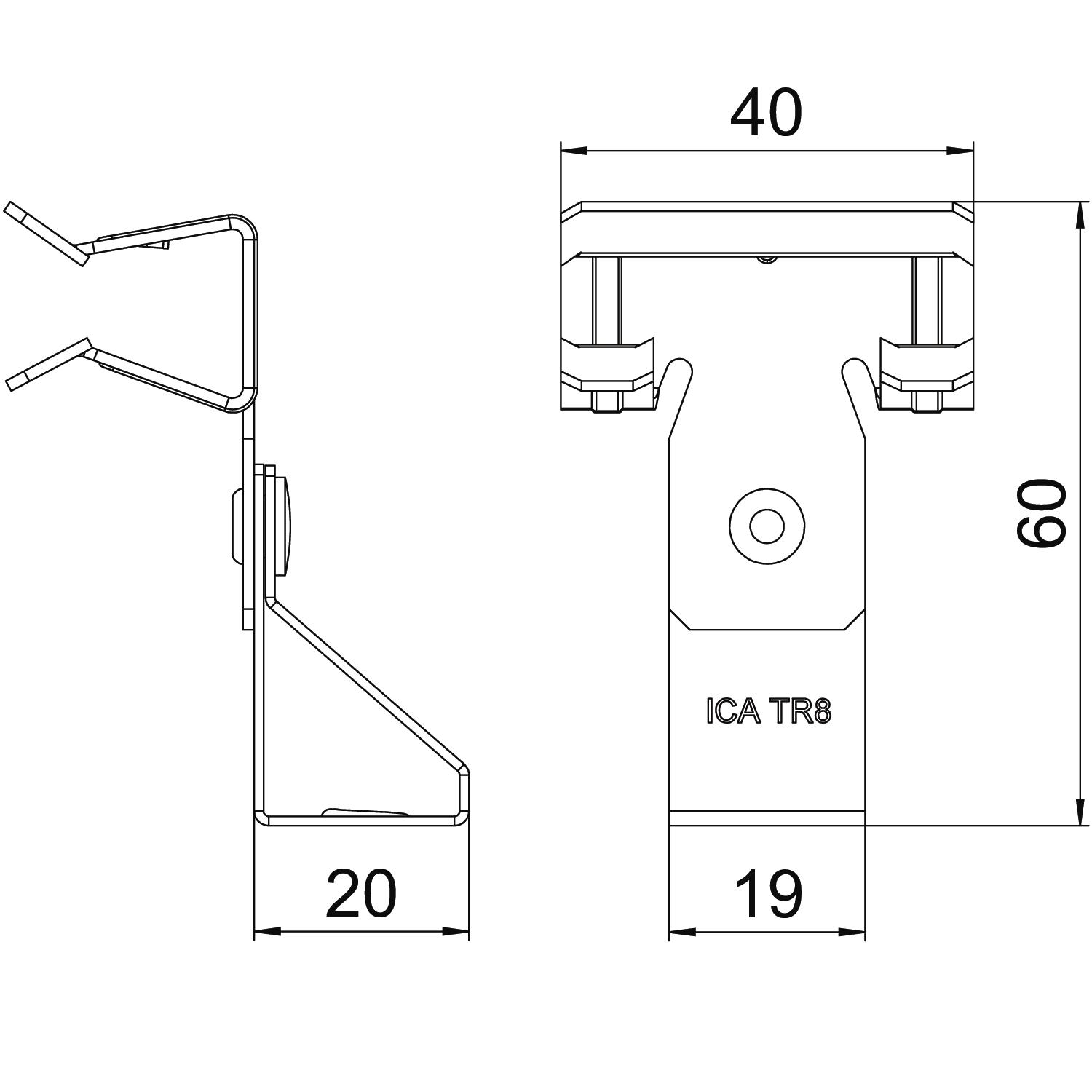 Description du produitSupport clamp with threaded rod seat for individual mounting solutions. Fastening through knocking onto steel girders.