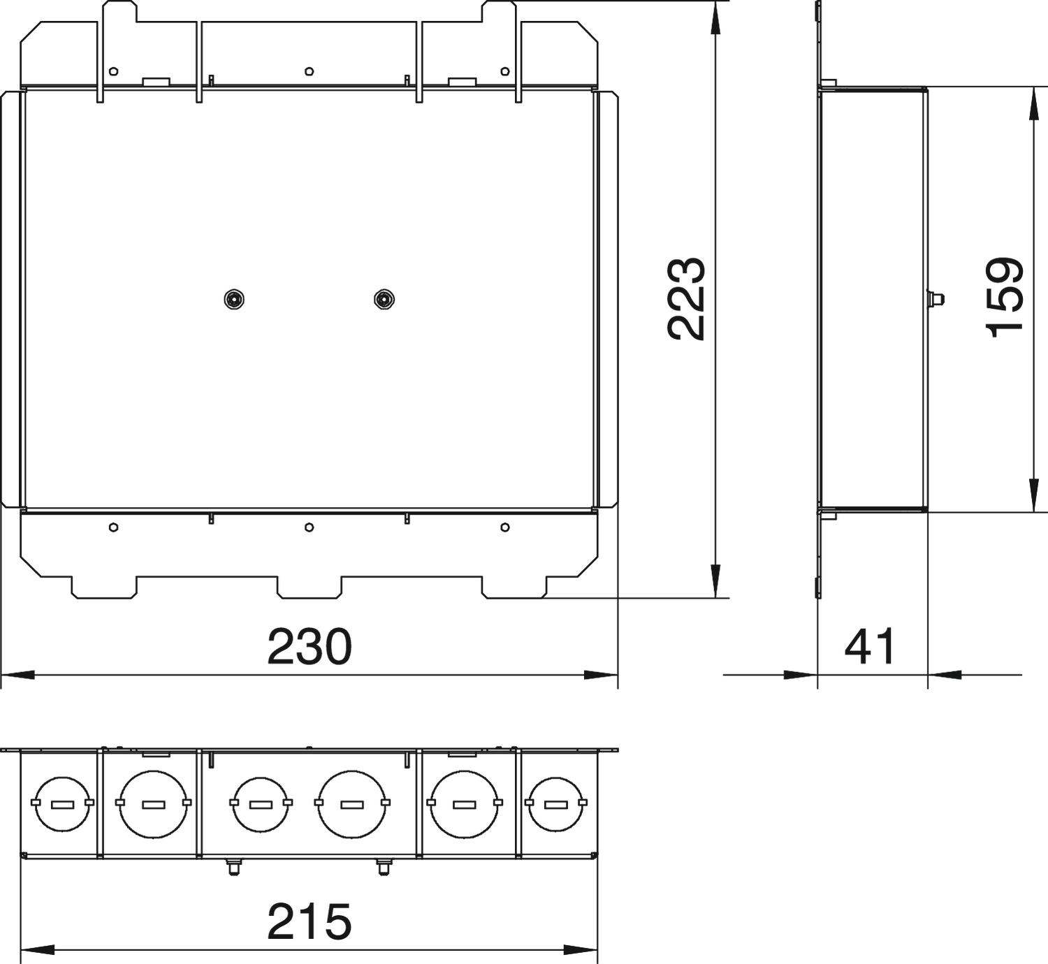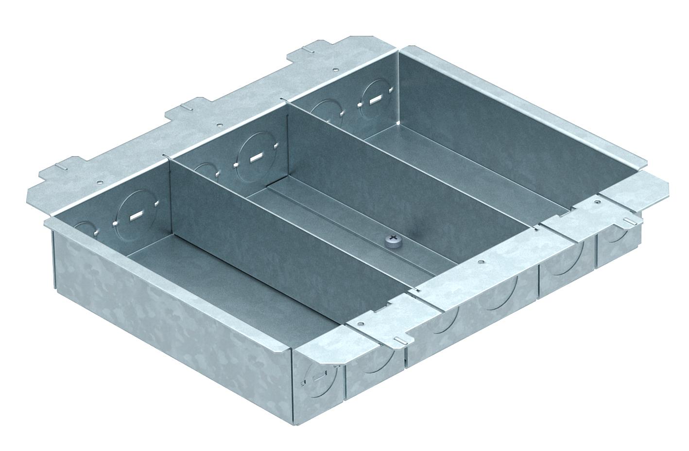 Description du produitSupport de montage fermé pour le logement de 3 plaques de recouvrement APMT5. Le support de montage se fixe sous le support d'encastrement GES9DB. Chacun avec 6 entrées défonçables pour ouvertures M20 et M25 pour la fixation des tuyaux flexibles.