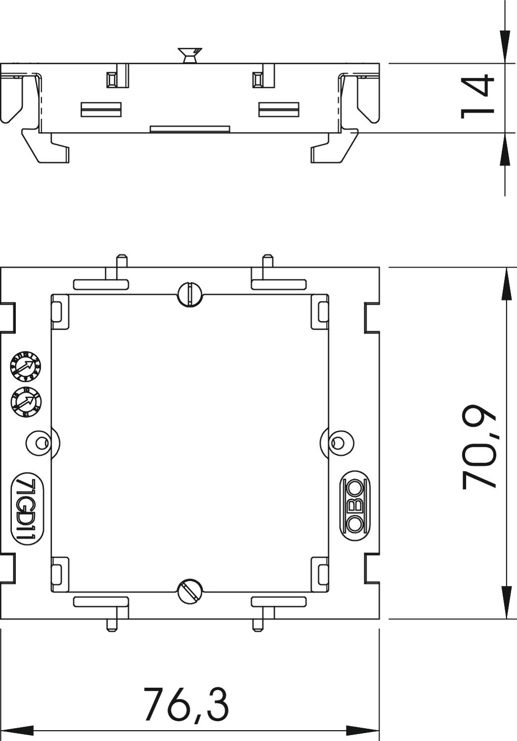 Avec kit de raccordement non Bande de fixation autres Couleur gris clair; RAL 7035 Dimension 14x76x71 Empreinte CO2 (GWP) du berceau à la porte 0,1134 kg CO2e / 1 Pièce Hauteur 14 mm Largeur 76 mm Longueur 71 mm Matériau Polyamide Modèle ouverte Nombre d'unités 1 Possibilité de décharge de traction non Sans halogène oui Type d'appareillage avec support/anneau porteur Type de montage appareil d'installation visser type de montage du boitier Avant - Tous les types