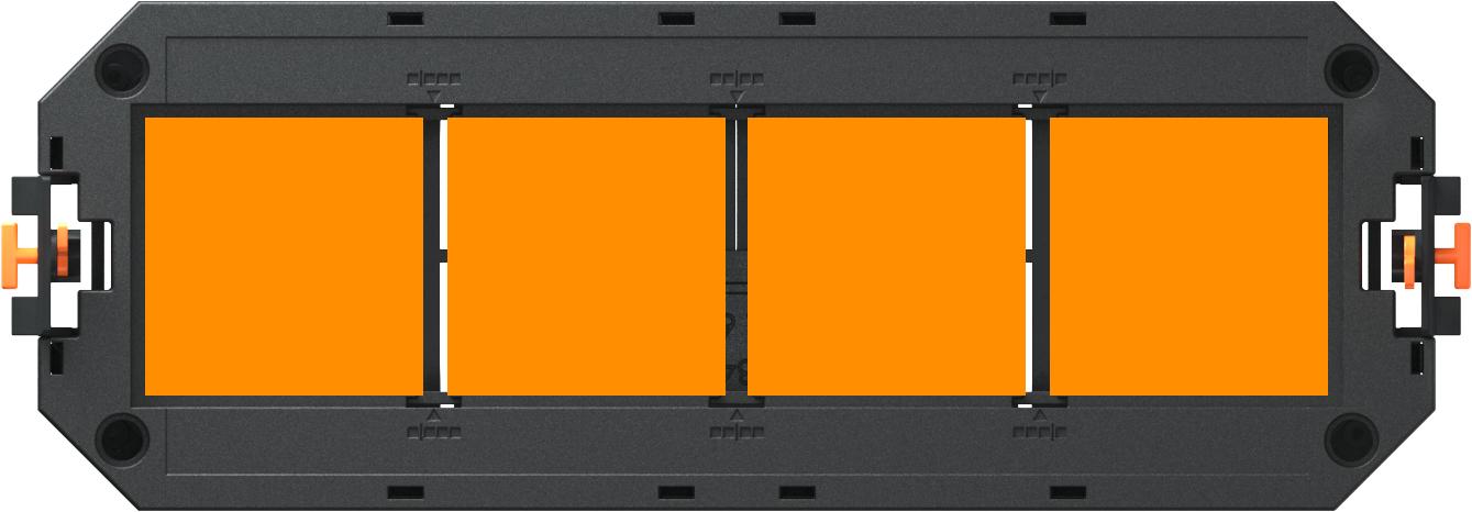 Description du produitSupport universel avec deux décharges de traction, ponts de montage, séparateur et plaque de recouvrement UT4 P4 pour le montage de 4 appareils Modul 45 dans des unités de montage de tailles nominales R7, R9 et 9.