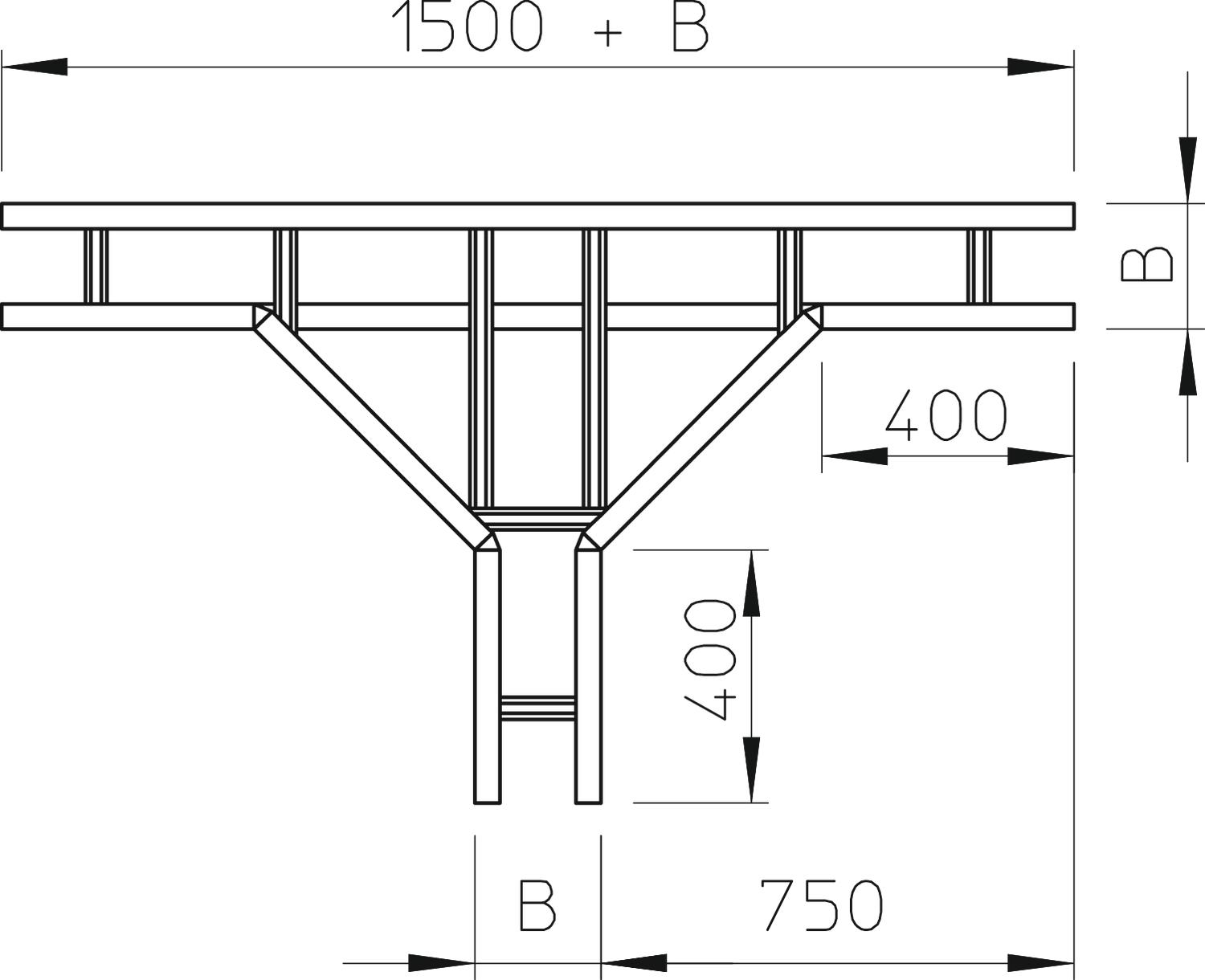 Description du produitTé de dérivation pour toutes les échelles à câbles longue portée d'une hauteur d'aile de 200 mm.