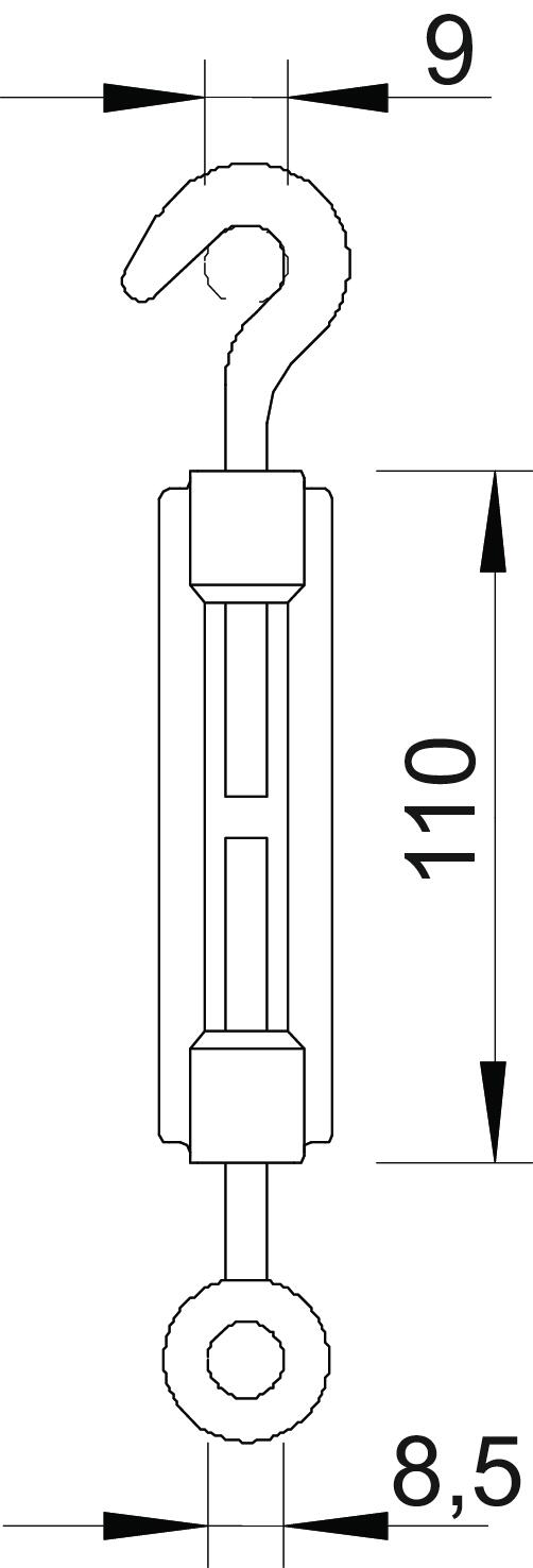 Description du produitAvec crochet et anneau, selon la norme DIN 1480.
