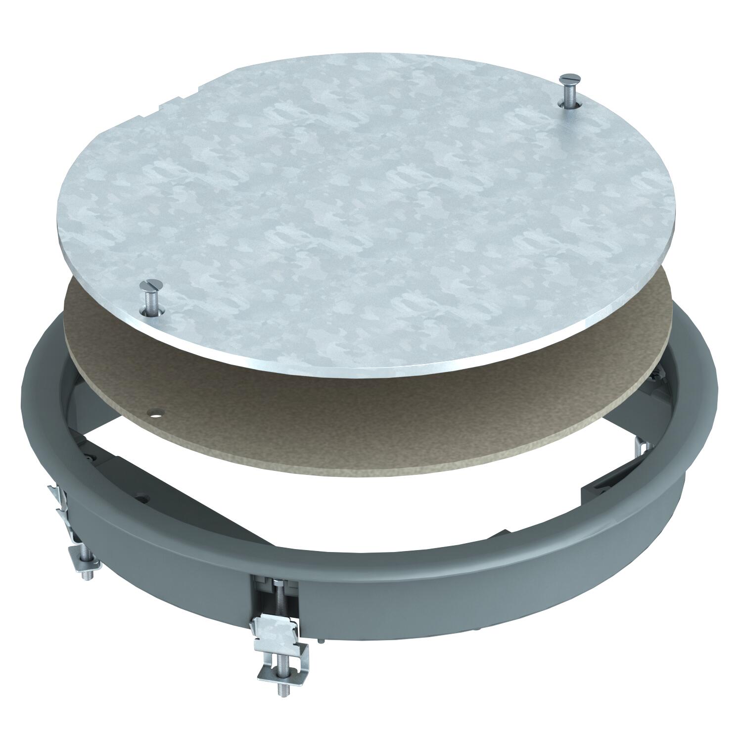 Description du produitTrappe d'inspection pour l'obturation d'une ouverture de montage ronde de taille nominale R4, dans les systèmes de goulottes et dans les faux planchers en intérieur.
