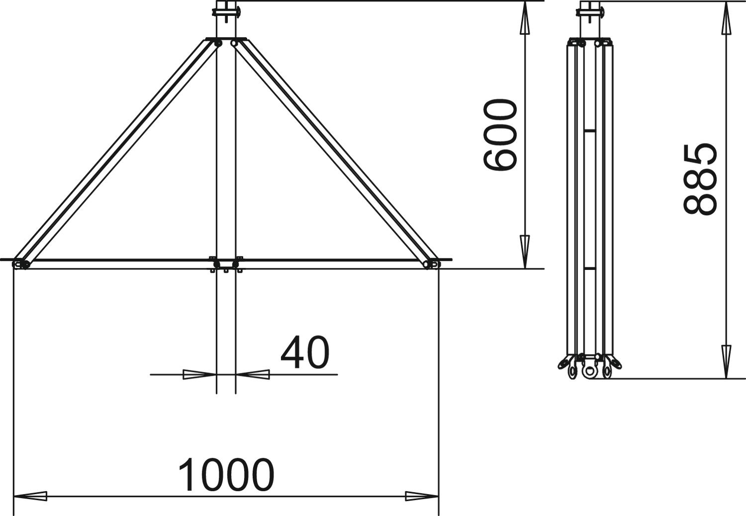 Cote B 1000 mm Cote L 600 mm Diamètre 1000 mm Dimension 1,25x1,35m Dimension d min. 40 mm Dimension H 885 mm Empreinte CO2 (GWP) du berceau à la porte 18,7716 kg CO2e / 1 Pièce Hauteur 885 mm Largeur 1000 mm Longueur 600 mm Matériau Aluminium Modèle Trépied Support de tige de captage sans vis - Tous les types