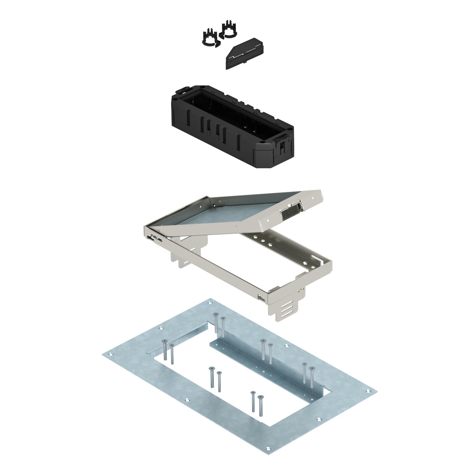 Description du produitCassette réglable en hauteur avec tous les accessoires nécessaires pour le montage direct dans des planchers creux en intérieur.