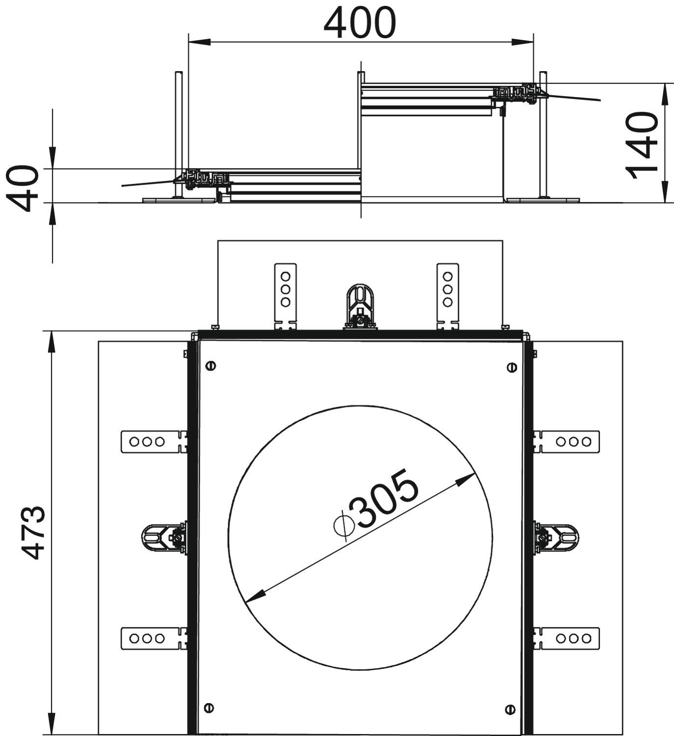 Taille de l'ouverture de montage adaptée au montage d'un boîtier de sol rond de taille nominale R9 ou R9/55.