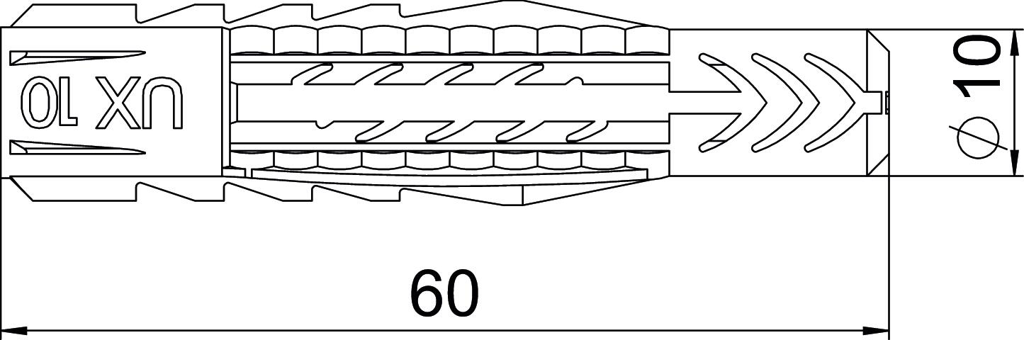 Description du produitUniversal nylon anchor for mounting light components on walls and ceilings. Suitable for concrete, calcareous limestone, full brick, hollow brick and porous concrete. The given load values are valid for wood screws with the specified diameter.