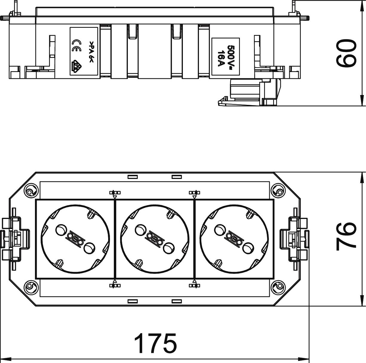 Circuit électrique 1 Combinaison de prises de courant triple Connectique GST18 Dimension 165x76x45 Empreinte CO2 (GWP) du berceau à la porte 0,7989 kg CO2e / 1 Pièce Hauteur 60 mm Largeur 76 mm Longueur 175 mm Modèle triple blanc pur Nombre d'appareillages montables 3 Nombre de raccordements 1 Parafoudre non Section transversale du câble 2,5 mm² Système de connecteur à fiche lié au système oui - Tous les types