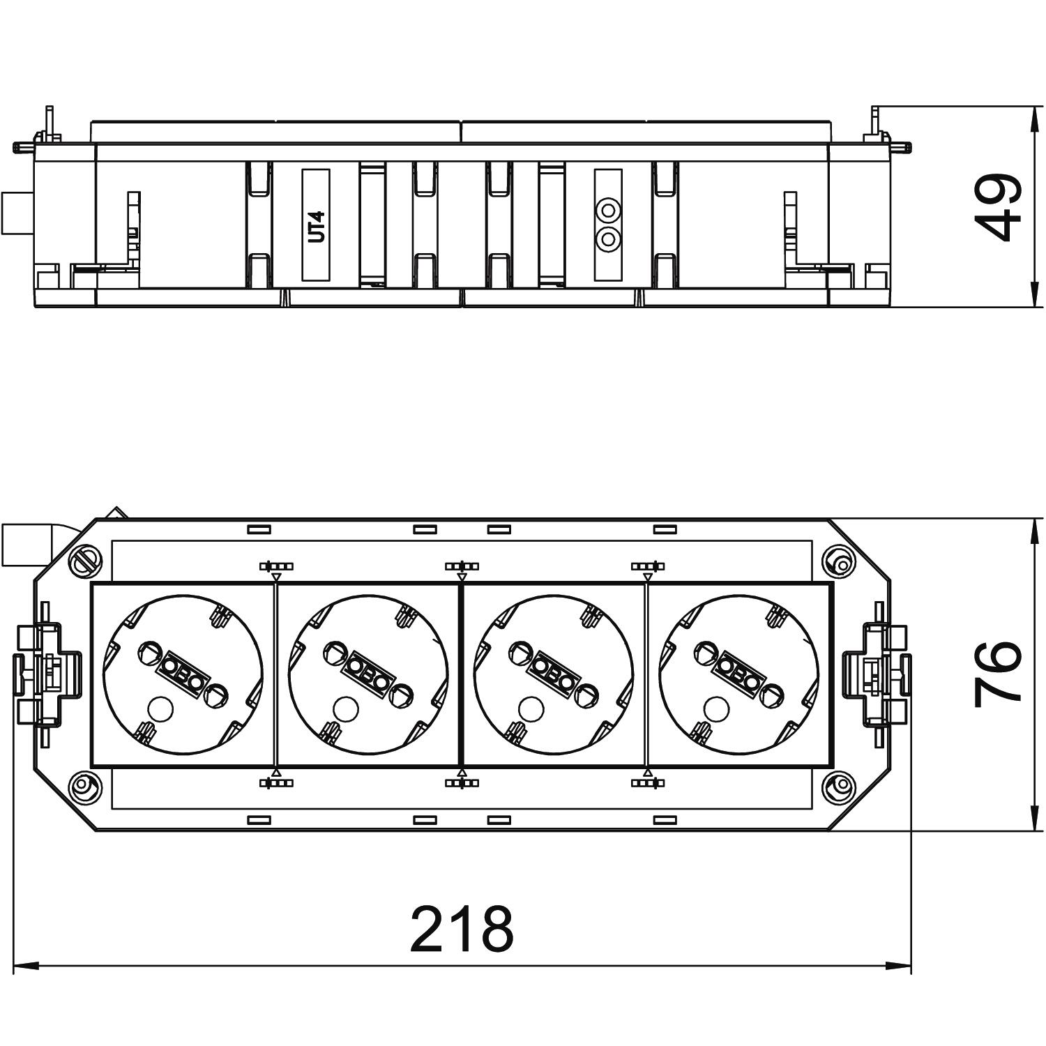 Le support universel prêt à monter UTC4 est équipé de 4 prises à contact de protection 33° orange pre-installés 250 V~16 A.
