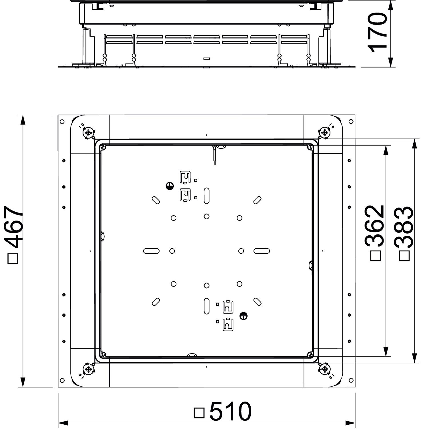 Description du produitBoîte de tirage et de dérivation sous plancher pour goulottes d'installation sous chape avec parois latérales en tôle d'acier. Pour le montage d'unités de montage dans le couvercle de montage (à commander séparément). Possibilité de nivellement continu à hauteur de la chape (nivellement rapide possible) et la chape peut être coulée de manière affleurante à l'arête de retraite de la chape. Avec possibilité de découplage acoustique une fois la chape coulée et utilisation possible avec les accessoires pour applications avec charges lourdes.