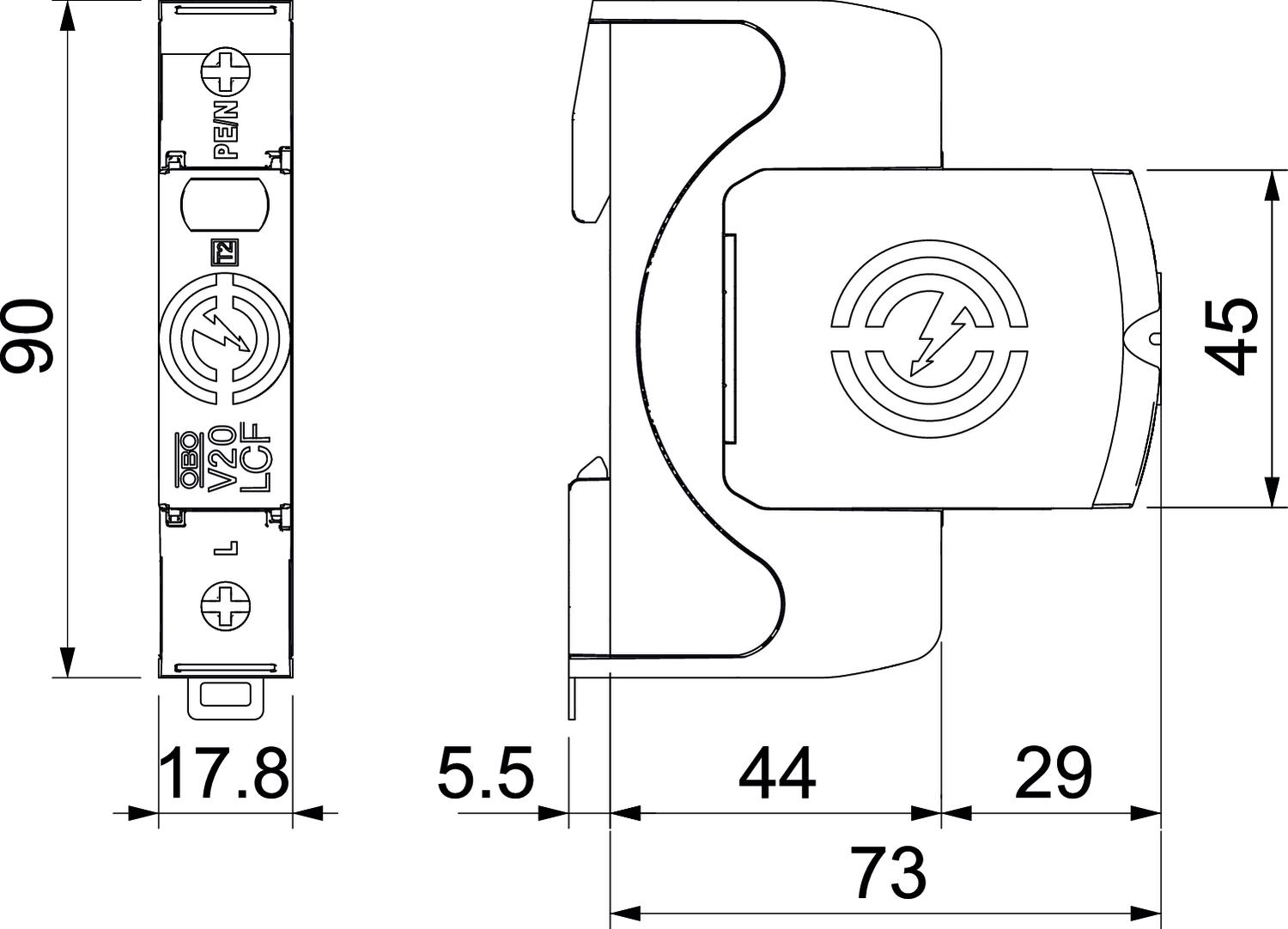 Description du produitParafoudre type 2 • Pour la liaison équipotentielle de protection contre les surtensions selon NF C 15 100 (IEC 60364-4-44) • Capacité d'écoulement jusqu'à 40 kA (8/20) par pôle grâce à des varistances haute performance • Parafoudre modulaire débrochable avec dispositif de coupure dynamique et voyant d'état • Mécanisme de verrouillage avec protection contre les vibrations et codage de tension • Plastique retardateur de la flamme selon UL 94 V-0 • Les variantes FS possèdent un contact inverseur libre de potentiel pour le report d'alarme Application : liaison équipotentielle dans les tableaux généraux et divisionnaires.