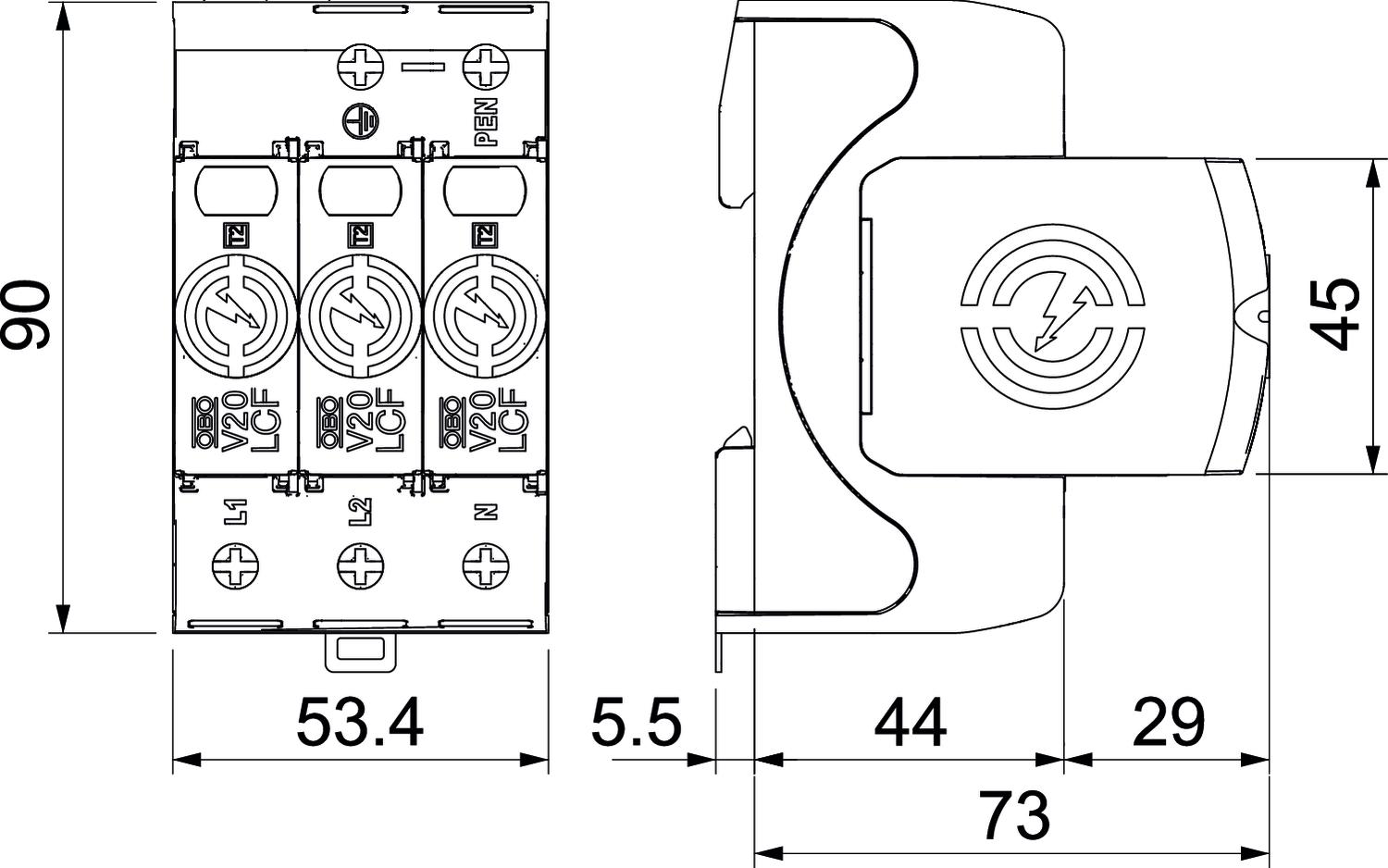 Autre type de réseau non Calibre de fusible maximum 160 A Classe d'essais type 2 oui Coupe-feu non Couple de serrage 4 Nm Courant de décharge maximal (8/20 μs) 30 kA Courant de décharge maximal (8/20 μs) [L-N] 30 kA Courant de décharge maximal (8/20 µs) [total] 90 kA Courant de décharge nominal (8/20) 20 kA Courant décharge nominal (8/20 μs) [L-N] 20 kA Dimension 280V Écartement minimal 1,5 mm Empreinte CO2 (GWP) du berceau à la porte 1,761 kg CO2e / 1 Pièce fusible de puissance intégré non Humidité de l’air max. 95 % Humidité de l’air min. 5 % Indice de protection IP20 Matériau du boîtier PA UL 94 V-0 Modèle 3 Niveau de protection [L-N] ≤1,5 Plage de températures d’utilisation max. 80 °C Plage de températures d’utilisation min. -40 °C Protection max contre les surintensités côté réseau 160 A gL/gG Report d'alarme non Résistance aux courts-circuits oui Résistance aux courts-circuits avec la protection maximale contre les surtensions côté réseau 50 kA eff Section de conducteur flexible (à fils de faible diamètre) max. 2 AWG Section de conducteur flexible (à fils de faible diamètre) max. 35 mm² Section de conducteur flexible (à fils de faible diamètre) min. 1,5 mm² Section de conducteur flexible (à fils de faible diamètre) min. 16 AWG Section de conducteur rigide (unifilaire/multifilaire) max. 35 mm² Section de conducteur rigide (unifilaire/multifilaire) max. 2 AWG Section de conducteur rigide (unifilaire/multifilaire) min. 1,5 mm² Section de conducteur rigide (unifilaire/multifilaire) min. 16 AWG Signalisation sur l'appareil optique SPD selon CEI 61643-1 classe II+III Température de service max. 80 °C Température de service min. -40 °C Tension continue max. (L-N) 280 V Tension max. permanente CA 280 V Tension nominale CA (50 / 60 Hz) 230 V Tension résiduelle [L-N] @ 1 kA 0,8 kV Tension résiduelle [L-N] @ 5 kA 1 kV Tension TOV [L-N] - fail safe mode - 120 min 440 V Tension TOV [L-N] - withstand mode - 5 s 335 V Tension TOV [N-PE] - withstand mode - 200 ms 1200 V Type de montage Rail DIN 35 mm Type de réseau CC non Type de réseau IT non Type de réseau TN oui Type de réseau TN-C oui Type de réseau TN-C-S oui Type de réseau TN-S oui Type de réseau TT non Type selon EN 61643-11 Type 2+3 Type selon UL1449 Type 4 - Tous les types