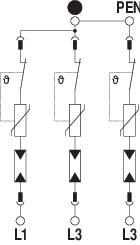 Description du produitParafoudre type 2 • Pour la liaison équipotentielle de protection contre les surtensions selon NF C 15 100 (IEC 60364-4-44) • Capacité d'écoulement jusqu'à 40 kA (8/20) par pôle grâce à des varistances haute performance • Parafoudre modulaire débrochable avec dispositif de coupure dynamique et voyant d'état • Mécanisme de verrouillage avec protection contre les vibrations et codage de tension • Plastique retardateur de la flamme selon UL 94 V-0 • Les variantes FS possèdent un contact inverseur libre de potentiel pour le report d'alarme Application : liaison équipotentielle dans les tableaux généraux et divisionnaires.